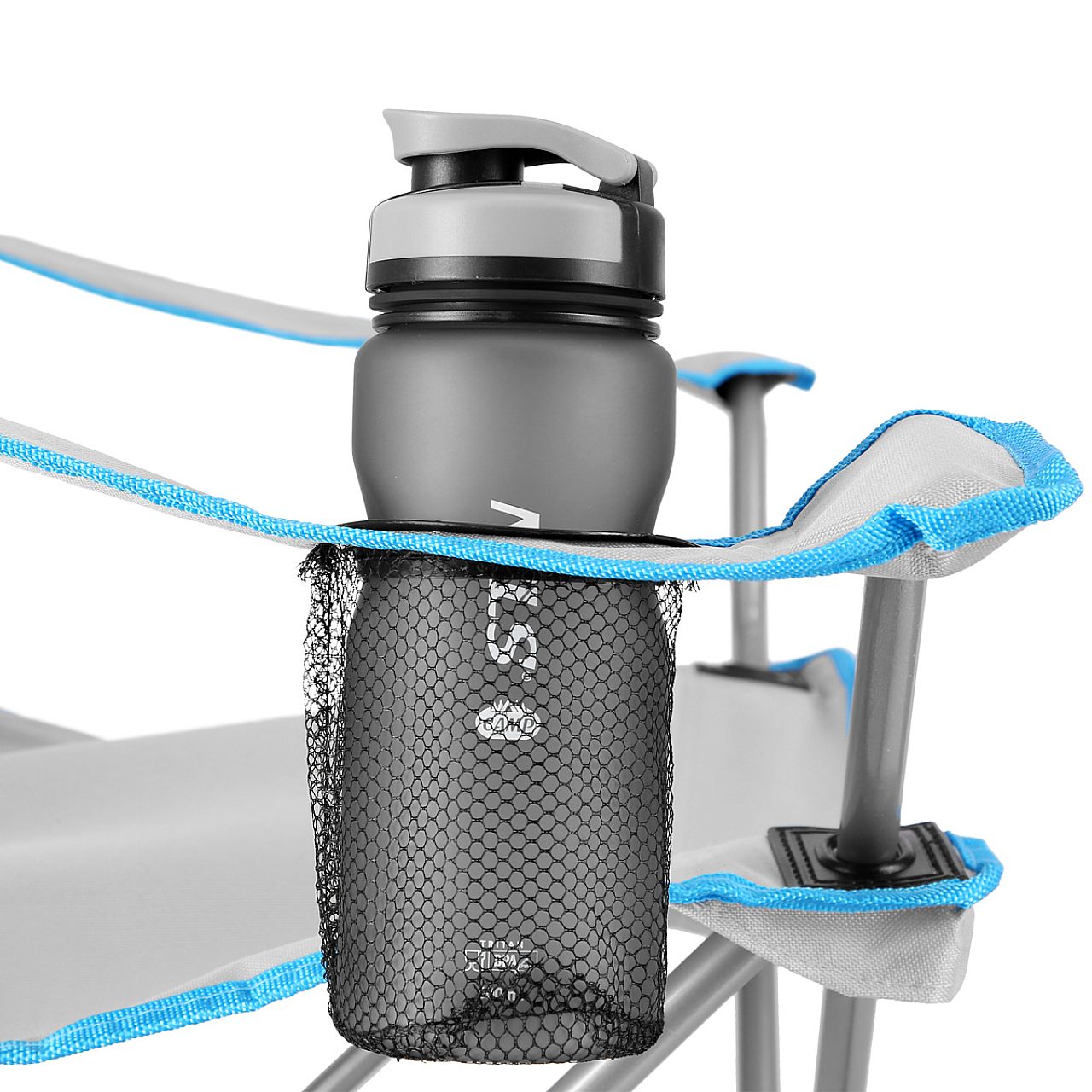 Це практичне крісло, яке буде працювати в будь-яких умовах і на будь-якій місцевості. За її стійкість відповідають міцні сталеві профілі діаметром 16 мм. Завдяки міцній конструкції та дуже міцному матеріалу 600D Oxford, допустиме навантаження крісла становить до 110 кг. Його доповнюють нековзні ніжки, які запобігають ковзанню.