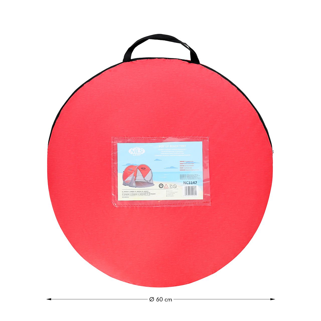 Це саморозкладний пляжний намет. Його розміри гарантують зручність і комфорт використання. Головною перевагою моделі NC3142 є те, що вона сама розкладається. Просто вийміть його з кришки та покладіть на землю. Через кілька секунд намет готовий. В результаті ми можемо швидко віддатися блаженному відпочинку. Завдяки прищіпкам, що входять в комплект, виріб не буде рухатися і не буде ризику бути віднесеним вітром. Додатково в наметі є спеціальні кишені, які можна наповнити піском. Вони також призначені для запобігання небажаного руху намету.