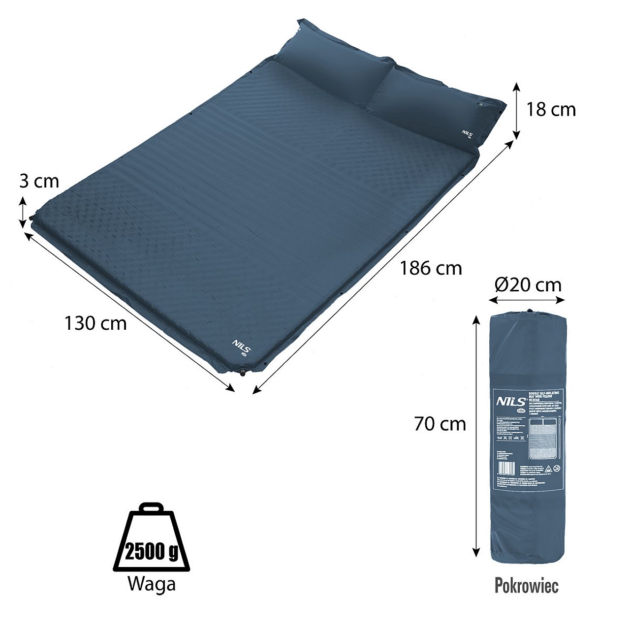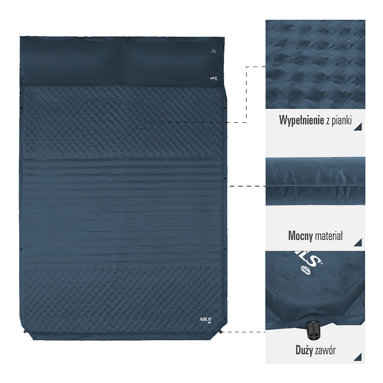 Самонадувний килимок з подушкою NC4060 - це широкий двомісний килимок, який стане відмінним рішенням для любителів провести час у кемпінгу, в наметі або на пляжі!
