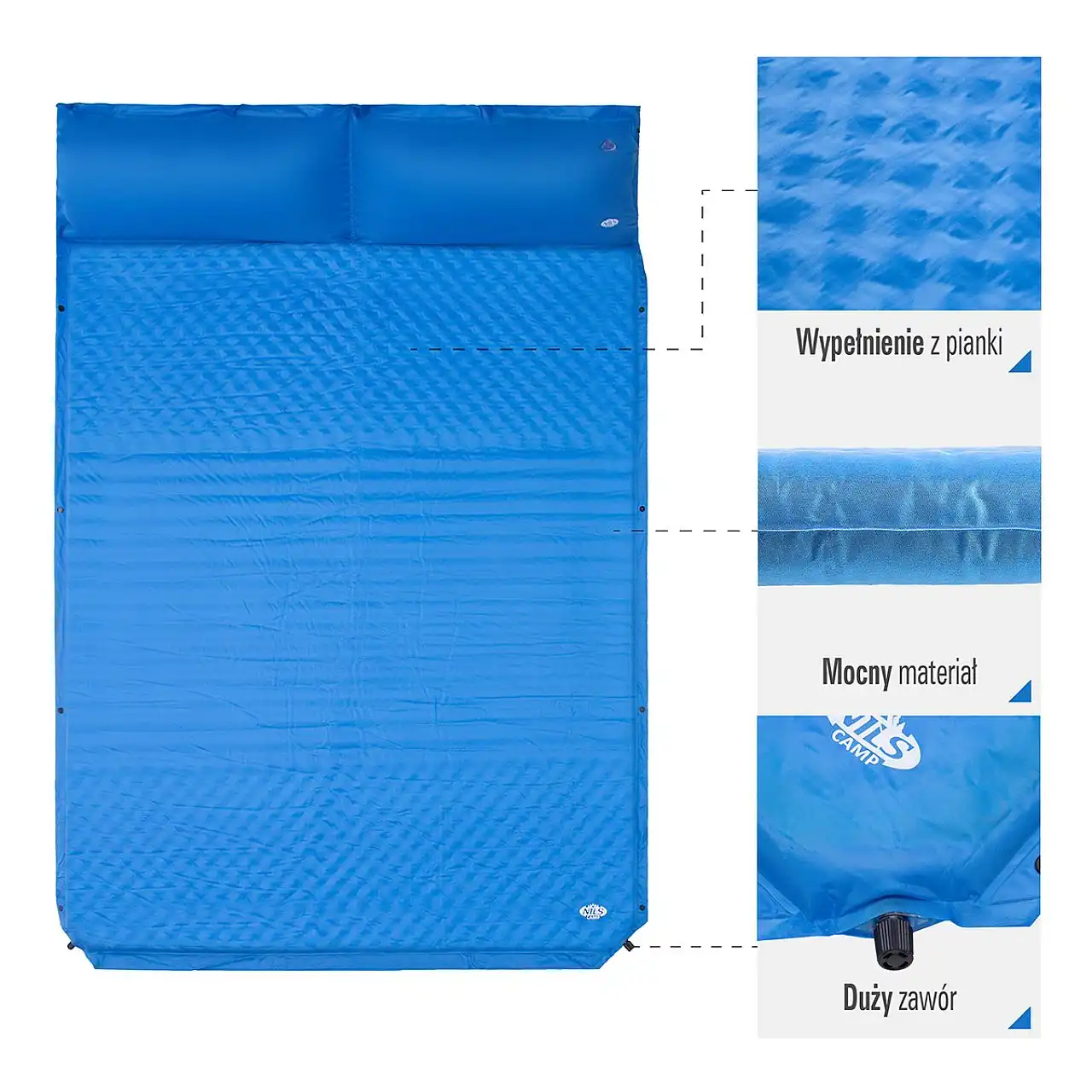 Самонадувний килимок з подушкою NC4060 - це широкий двомісний килимок, який стане відмінним рішенням для любителів проводити час у кемпінгу, в наметі або на пляжі!