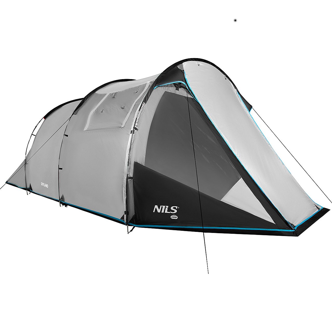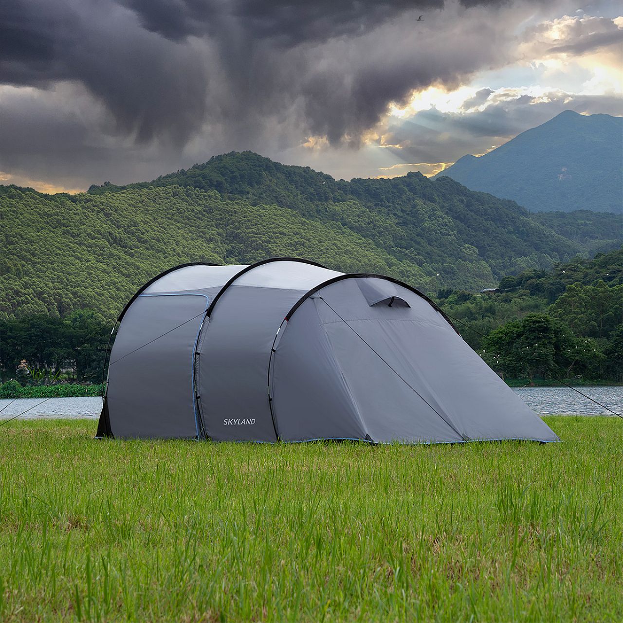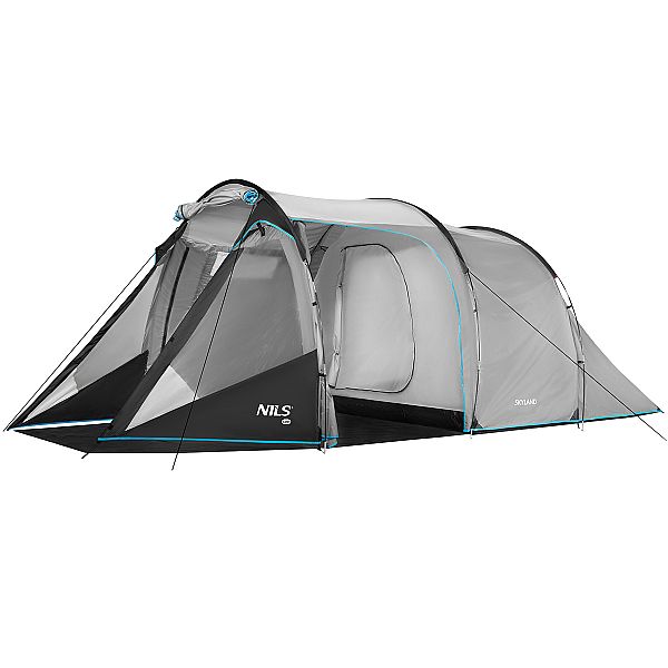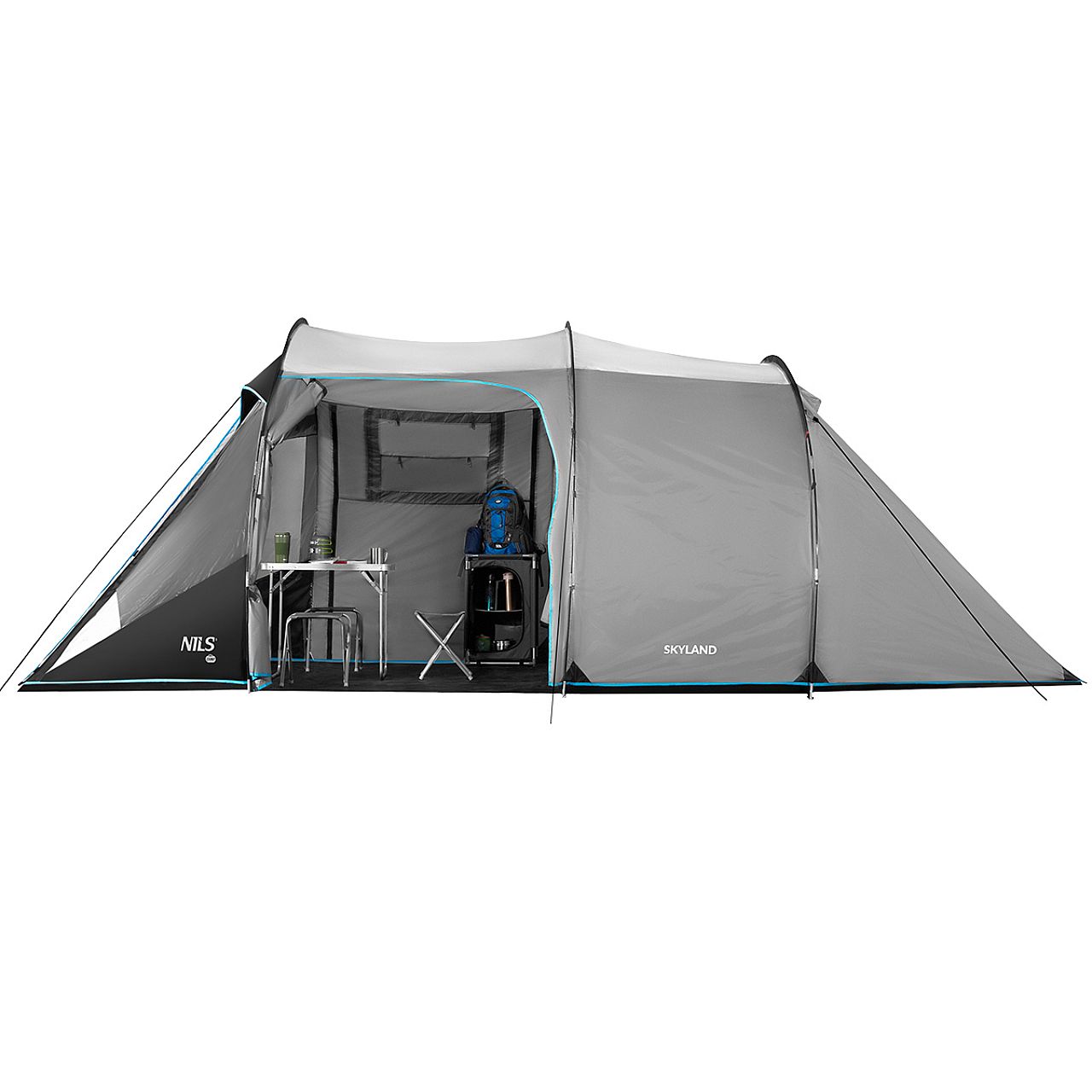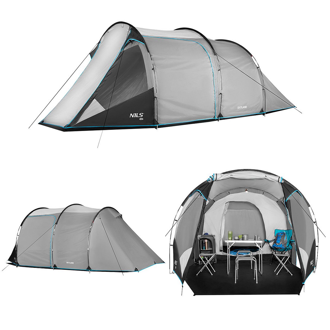 Туристичний намет Nils Camp NC6023 Skyland - найкраще рішення для любителів походів вихідного дня на озеро і тривалого відпочинку в кемпінгу. Skyland — це двокорпусний намет з однією просторою спальнею на чотири людини та великим тамбуром із підлогою, де можна провести дощові вечори чи зберігати туристичне спорядження. У наметі можуть розміститися до чотирьох осіб, що робить його надзвичайно просторим і комфортним.