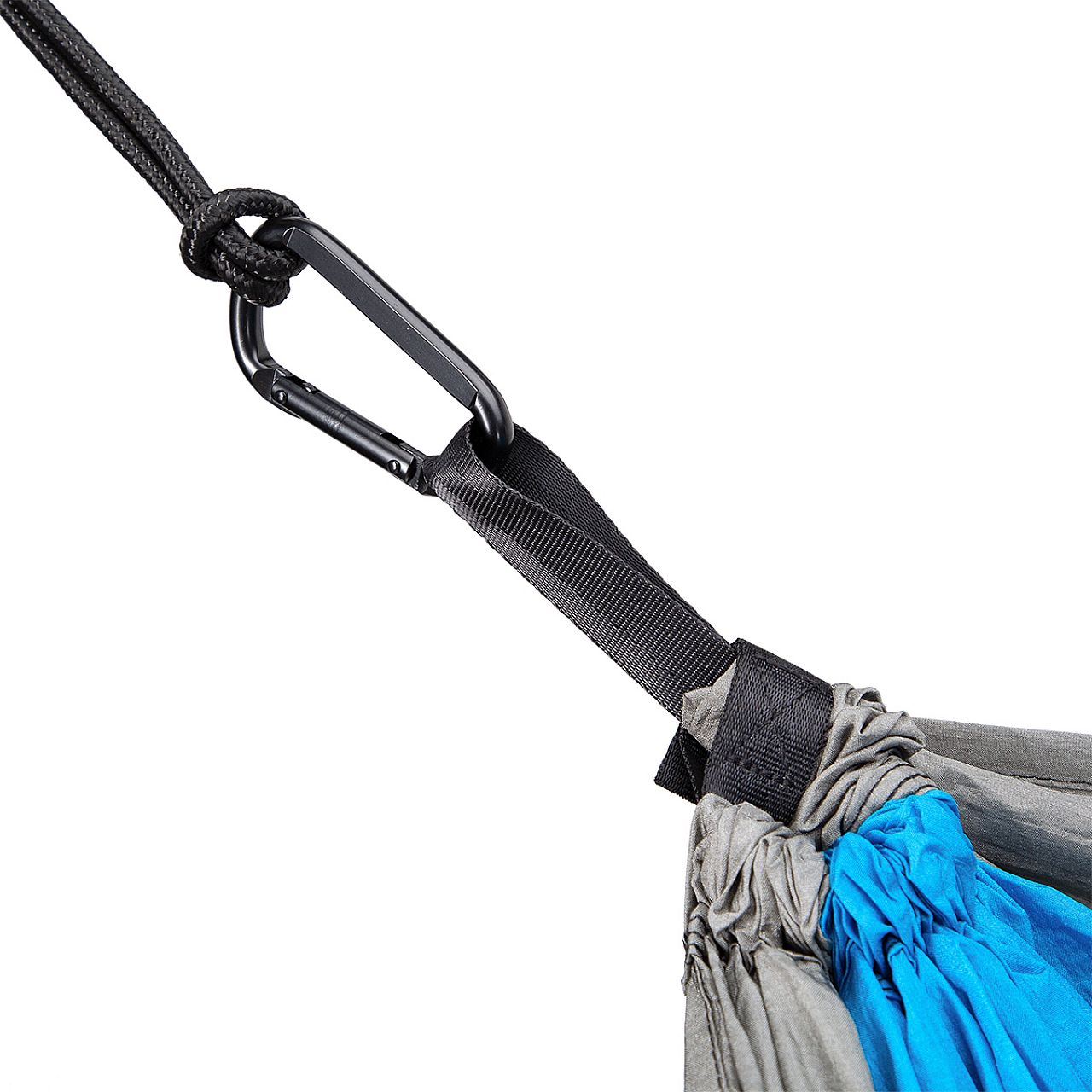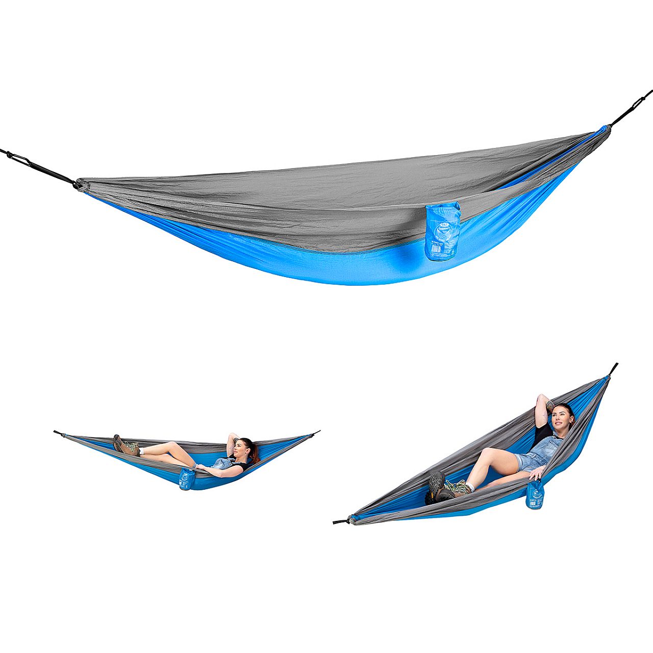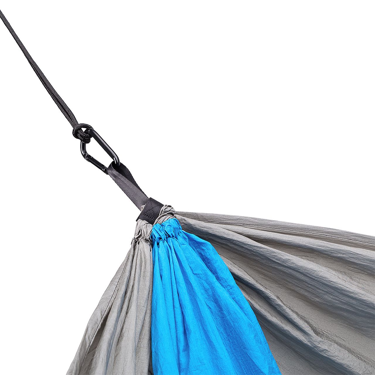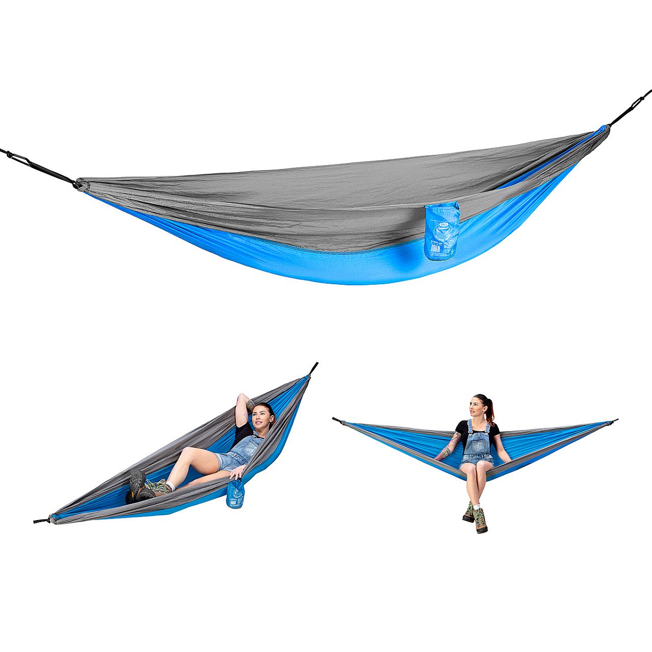 Матеріал гамака - нейлон 210T. Він не тільки дуже міцний, але і приємний на дотик. Його дихаюча структура забезпечує комфорт під час відпочинку та забезпечує швидке висихання гамака. Матеріал стійкий до погодних умов і будь-яких деформацій.