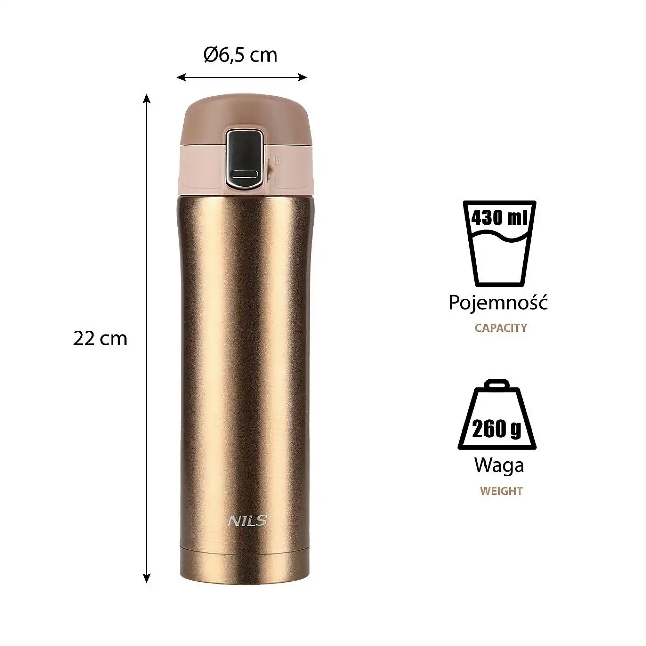 Термокружка NCB10 від Nils відрізняється як простою конструкцією, так і оригінальним дизайном! NCB10 - термокружка з двостінної нержавіючої сталі, яка гарантує збереження температури гарячих напоїв протягом 12 годин і холодних протягом 24 годин. Що відрізняє чашку NCB10, так це система відкривання з опцією замка, що робить термокружку надзвичайно герметичною, тож ви можете брати її куди завгодно та не хвилюватись про те, що вона протікає. Щоб розблокувати замок і відкрити кришку, просто посуньте кнопку безпеки вгору, потім натисніть кнопку відкриття, і все, чашка автоматично відкриється!