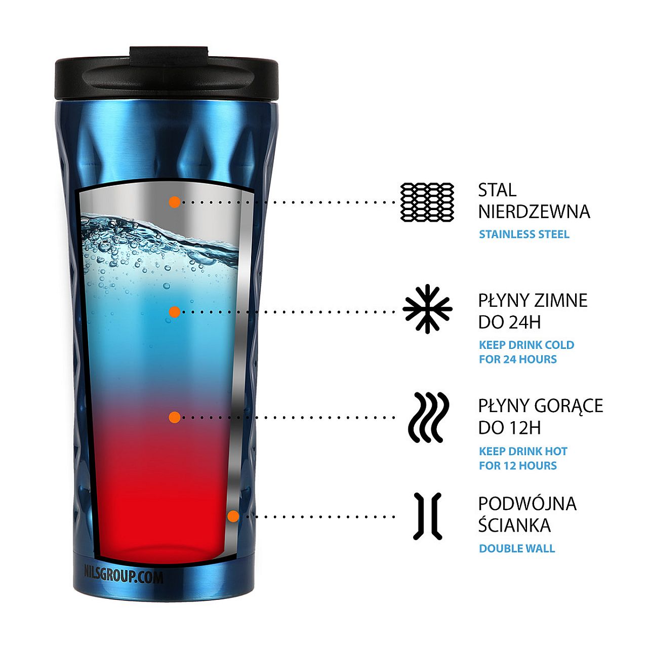 Термокружка NCB44 від Nils відрізняється як простою конструкцією, так і оригінальним дизайном! NCB44 - термокружка з двостінної нержавіючої сталі, яка гарантує збереження температури гарячих напоїв протягом 12 годин і холодних протягом 24 годин. Термокружка NCB44 має дуже зручну систему відкривання. Просто потягніть ручку відкривання, і готово. Ще однією великою перевагою є те, що нижня частина кухля має нековзку гуму, що підвищує безпеку від проливання гарячої кави або чаю, коли кухоль відкритий!