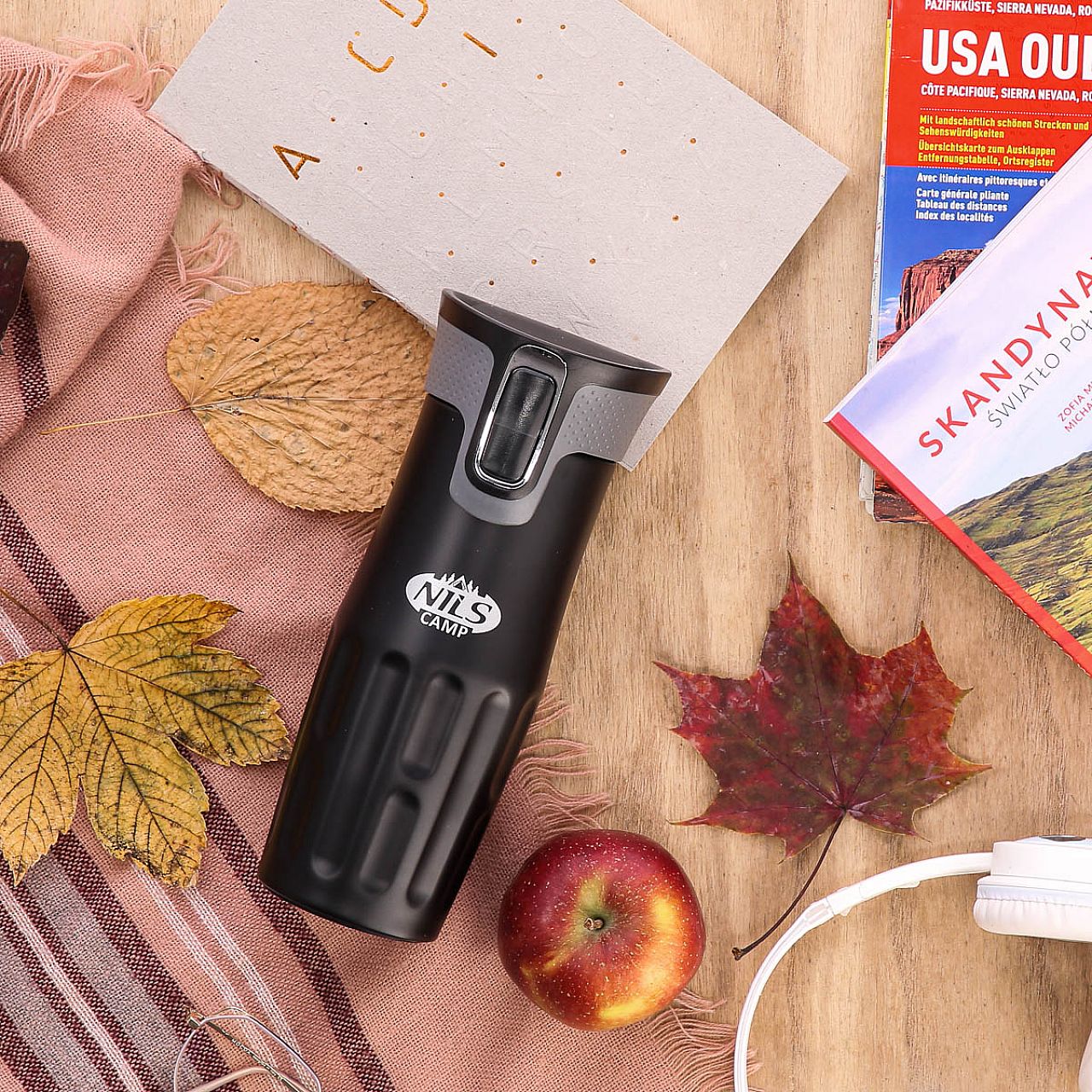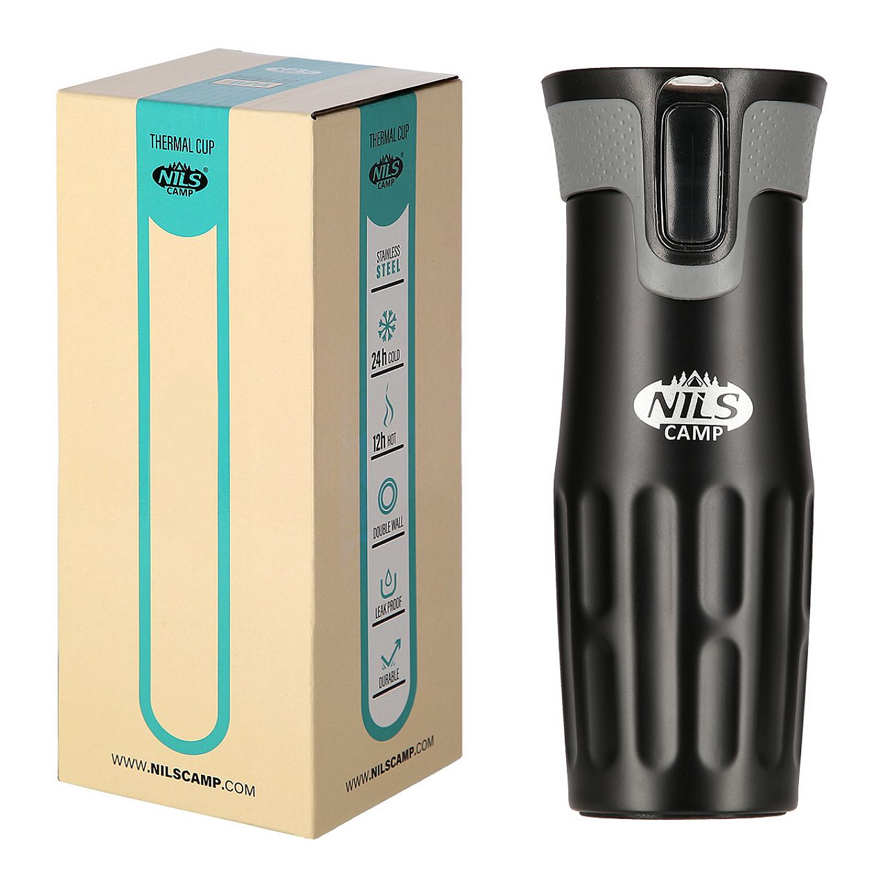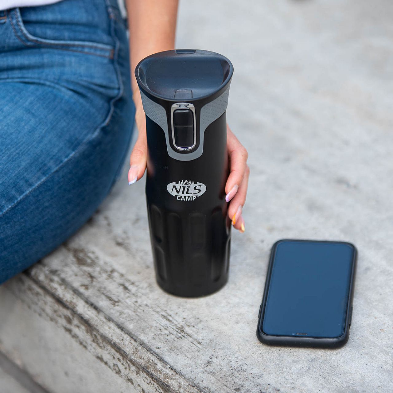 Термокружка NCC06 від Nils Camp відрізняється як простою конструкцією, так і оригінальним дизайном! NCC06 - термокружка з двостінної нержавіючої сталі, яка гарантує збереження температури гарячих напоїв протягом 12 годин і холодних протягом 24 годин. Термокружка NCC06 має інноваційну систему відкривання. Щоб випити, натисніть і утримуйте кнопку - тоді блокування відкривання звільняється. Однак, щоб заблокувати відкриття, просто відпустіть кнопку. Кружка також має тиснення в захопленій частині, що полегшує утримання і підвищує безпеку при русі. Ще однією великою перевагою є те, що нижня частина кухля має нековзку гуму, що підвищує безпеку від проливання гарячої кави або чаю, коли кухоль відкритий!
