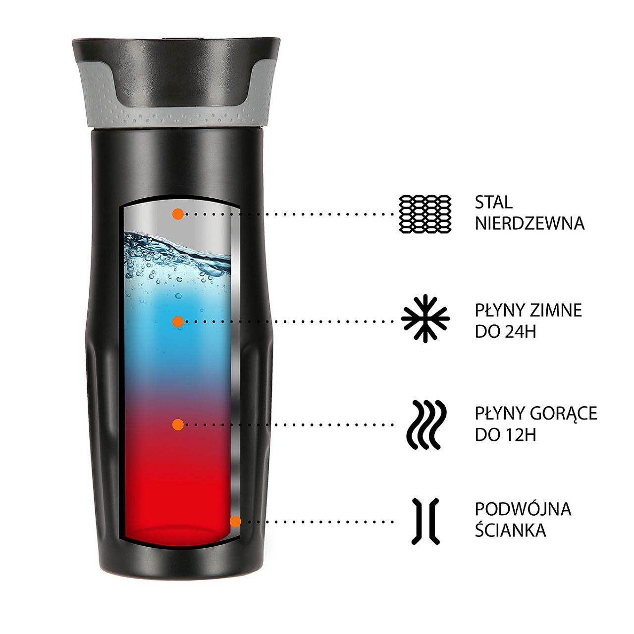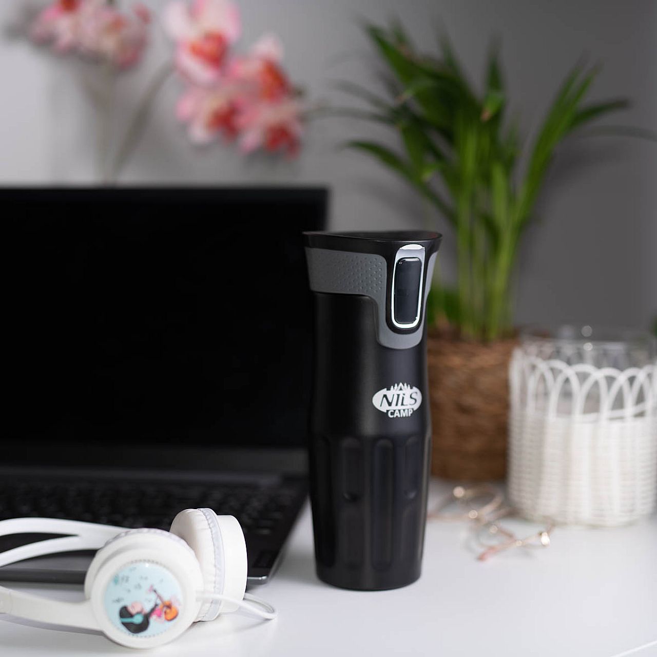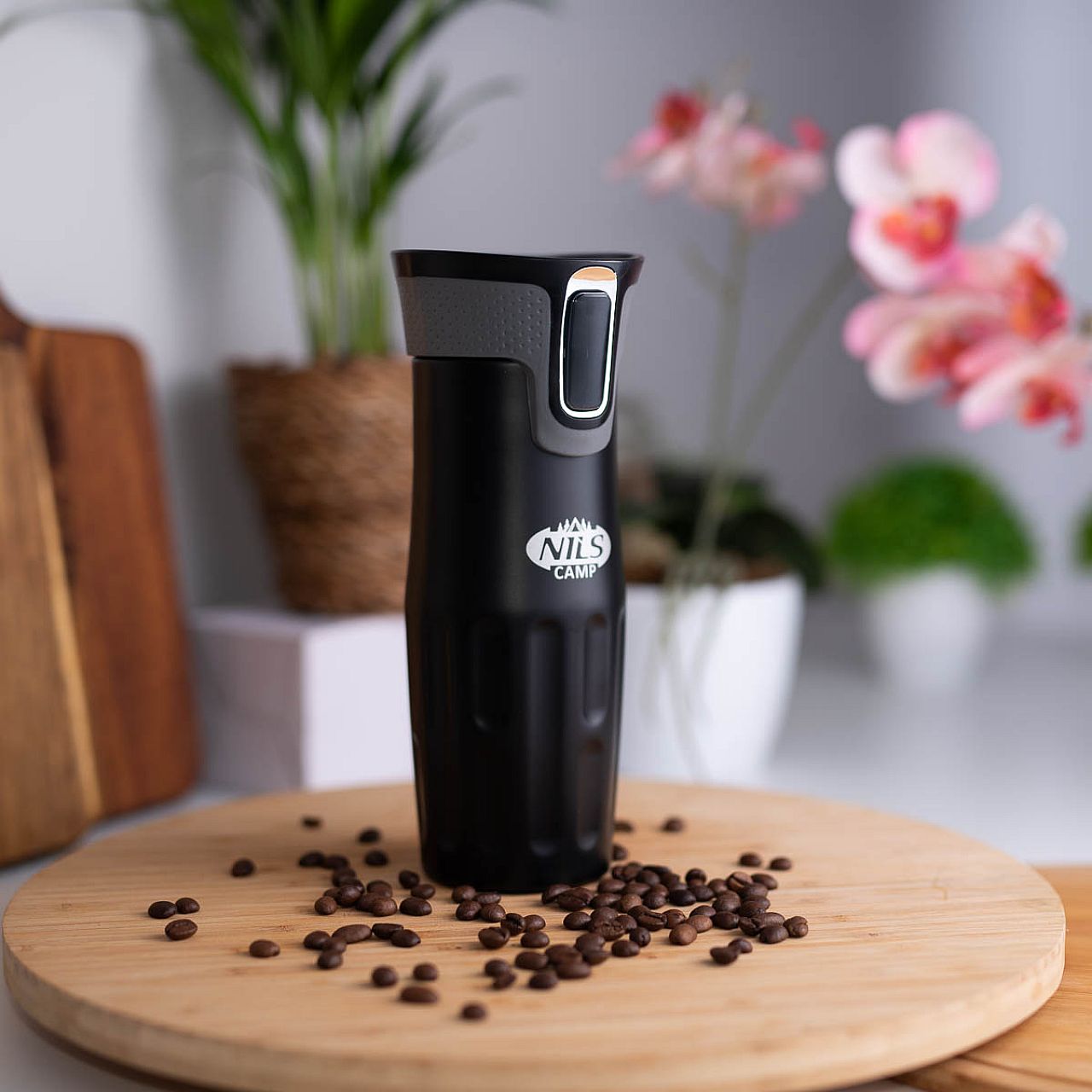 Термокружка NCC06 від Nils Camp відрізняється як простою конструкцією, так і оригінальним дизайном! NCC06 - термокружка з двостінної нержавіючої сталі, яка гарантує збереження температури гарячих напоїв протягом 12 годин і холодних протягом 24 годин. Термокружка NCC06 має інноваційну систему відкривання. Щоб випити, натисніть і утримуйте кнопку - тоді блокування відкривання звільняється. Однак, щоб заблокувати відкриття, просто відпустіть кнопку. Кружка також має тиснення в захопленій частині, що полегшує утримання і підвищує безпеку при русі. Ще однією великою перевагою є те, що нижня частина кухля має нековзку гуму, що підвищує безпеку від проливання гарячої кави або чаю, коли кухоль відкритий!