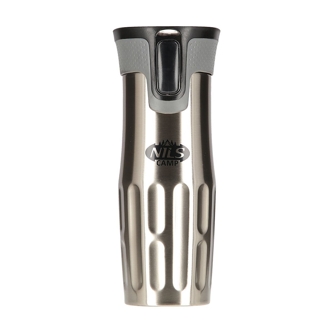 Термокружка NCC06 від Nils Camp відрізняється як простою конструкцією, так і оригінальним дизайном! NCC06 - термокружка з двостінної нержавіючої сталі, яка гарантує збереження температури гарячих напоїв протягом 12 годин і холодних протягом 24 годин. Термокружка NCC06 має інноваційну систему відкривання. Щоб випити, натисніть і утримуйте кнопку - тоді блокування відкривання звільняється. Однак, щоб заблокувати відкриття, просто відпустіть кнопку. Кружка також має тиснення в захопленій частині, що полегшує утримання і підвищує безпеку при русі. Ще однією великою перевагою є те, що нижня частина кухля має нековзку гуму, що підвищує безпеку від проливання гарячої кави або чаю, коли кухоль відкритий!