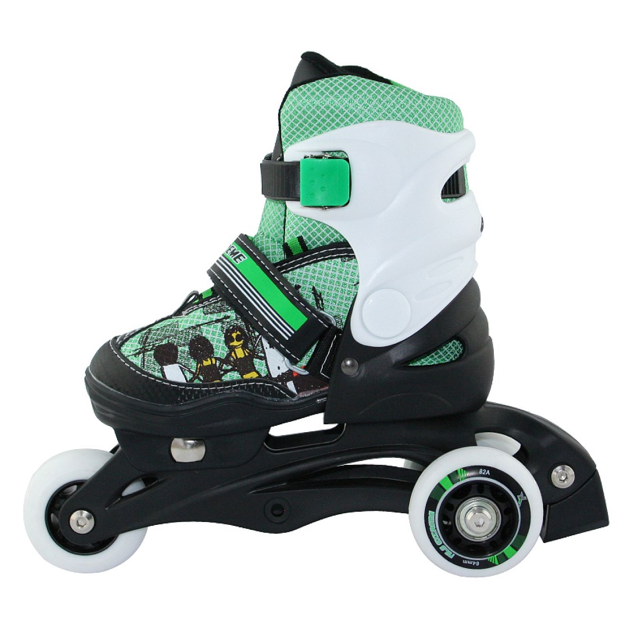 Завдяки можливості переміщення додаткового колеса на задню вісь, роликовий ковзан функціонально перетворюється на роликовий ковзан. Взуття легке і міцне, що забезпечує безпеку під час катання. Модель оснащена чотириступінчастою регулюванням розміру. Використовуючи просту систему регулювання, ви можете легко і швидко підігнати розмір взуття під ногу користувача. Поліуретанові колеса та підшипники ABEC забезпечують нашим юним користувачам великий комфорт під час їзди.