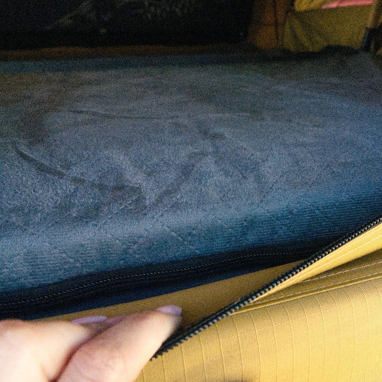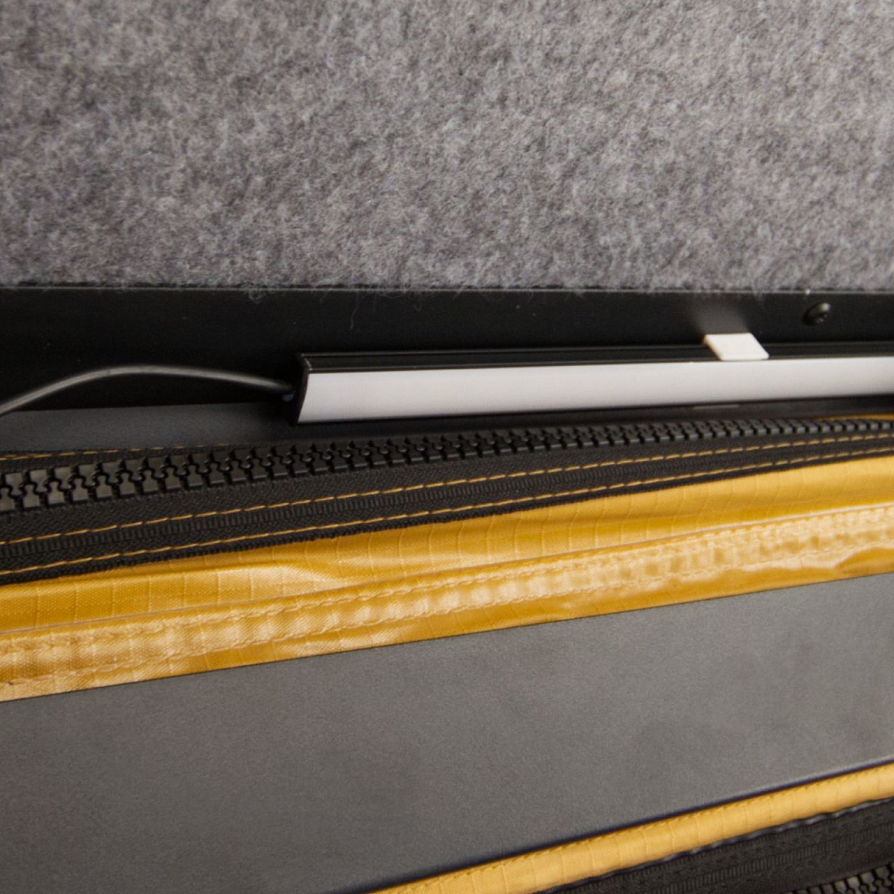 Внутрішня частина чохла покрита м'яким автомобільним килимком, на який за допомогою липучок можна кріпити різні аксесуари, такі як сумки, кишені, підсвічування, павербанки і т.д.
