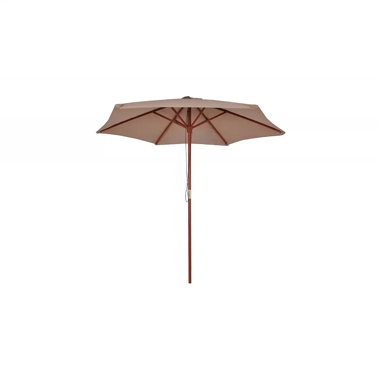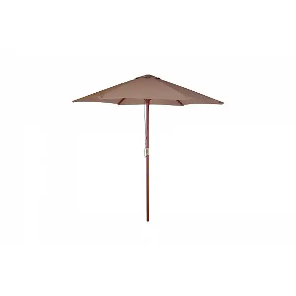 Дерев'яна садова парасолька Bali діаметром 2,5 м. Міцна дерев'яна конструкція парасольки ідеально впишеться в набір садових меблів з дерева. Навіс для парасольки виготовлений з міцного поліестерового матеріалу. Система, яка використовується для розкладання та складання парасольки за допомогою мотузки та шпильки, дуже проста та зручна у використанні. Парасолька дає велику тінь, тому відмінно підходить для присадибних ділянок, ділянок, а також кафе і ресторанів. Каркас парасольки складається з двох частин, з'єднаних різьбовим з'єднанням.
