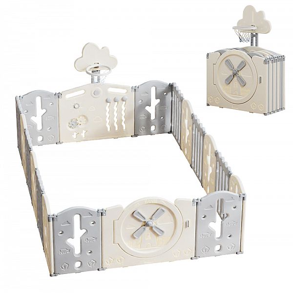 Окрім інтерактивних елементів , які сприяють розвитку сенсорних і моторних навичок дітей, він також містить баскетбольне кільце , у яке ваші маленькі спортсмени можуть стріляти.