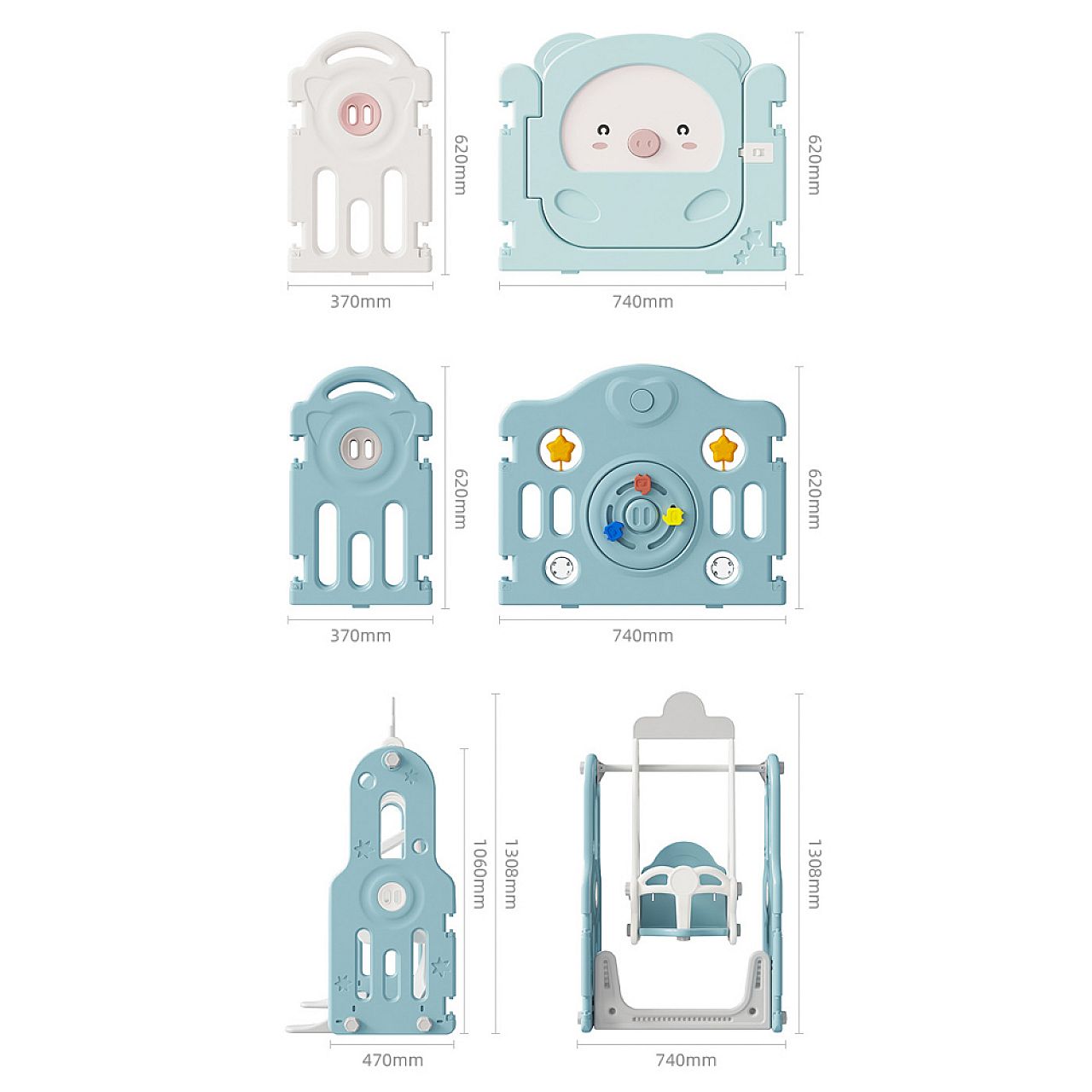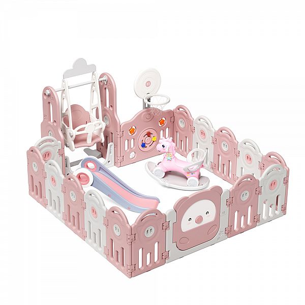 А чого чекати дітям? Манеж оснащений регульованими гойдалками , які сподобаються як маленьким, так і старшим дітям. Барвиста гірка дозволить їм рухатися, тим самим допомагаючи розвивати їхні рухові та фізичні навички. Конячку-гойдалку можна миттєво перетворити на балансир , щоб ваш маленький принц чи принцеса вирушили в уявну пригоду. А якщо ваша дитина любить спорт, їй сподобається стрільба з кільців. Крім того, є маленькі інтерактивні елементи , які є частиною панелей манежу та можуть допомогти розвинути дрібну моторику ваших дітей.