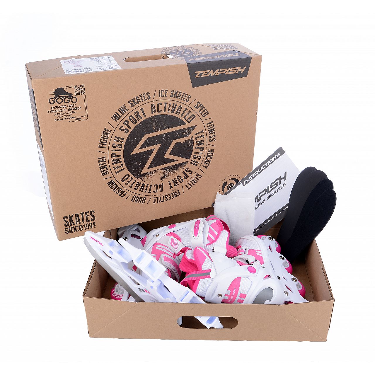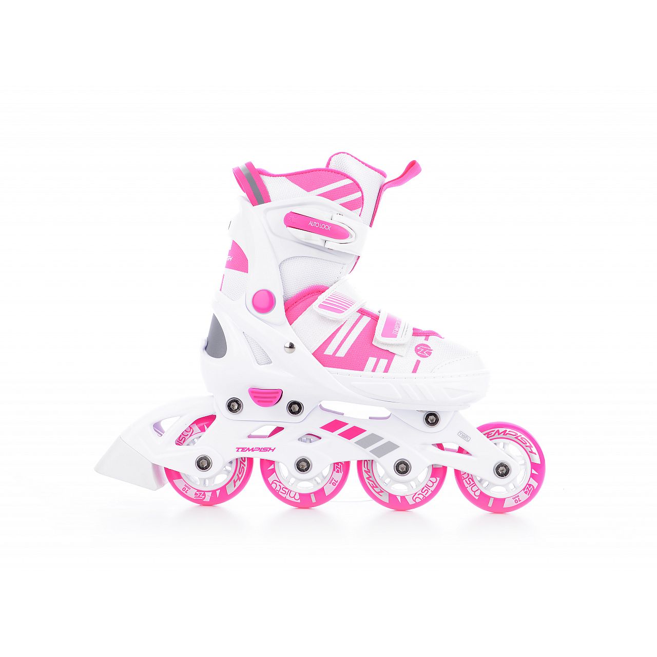 якісні дитячі роликові ковзани з розсувним механізмом, що дозволяє регулювати модель в межах чотирьох значень розміру. Кожен розмір має колеса різного діаметру, ширина при цьому залишається незмінною і дозволяє однаково добре себе почувати на дорожньому покритті дитині будь-якого віку.