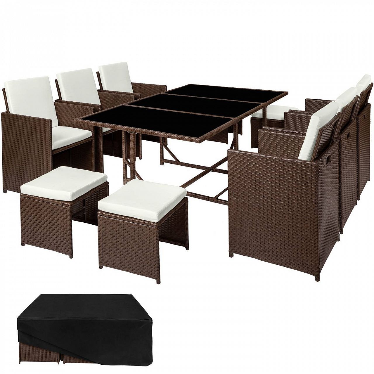 Використовуваний матеріал, тобто. technorattan, був спеціально розроблений для садових меблів. Технораттан - це загальний термін, що визначає матеріал для плетіння поліетилену, який є промислово підготовленою альтернативою натуральному ротангу. Тому ваш новий комплект садових меблів можна чистити і легко утримувати в чистоті. Крім того, садові меблі з техноратану характеризуються високою стійкістю до погодних умов. М'які подушки кремового кольору водонепроникні та можуть бути легко видалені завдяки вшитим кришкам. Загартоване скло знизу пофарбоване в чорний колір, що надає йому благородного вигляду. Стільці можна легко переміщати завдяки поглибленню з боків. Завдяки складеній спинці стільці та табурети можна скласти у модульну систему. Чохол, що додається, забезпечує додатковий захист для продовження терміну використання цього чудового гарнітура для відпочинку.