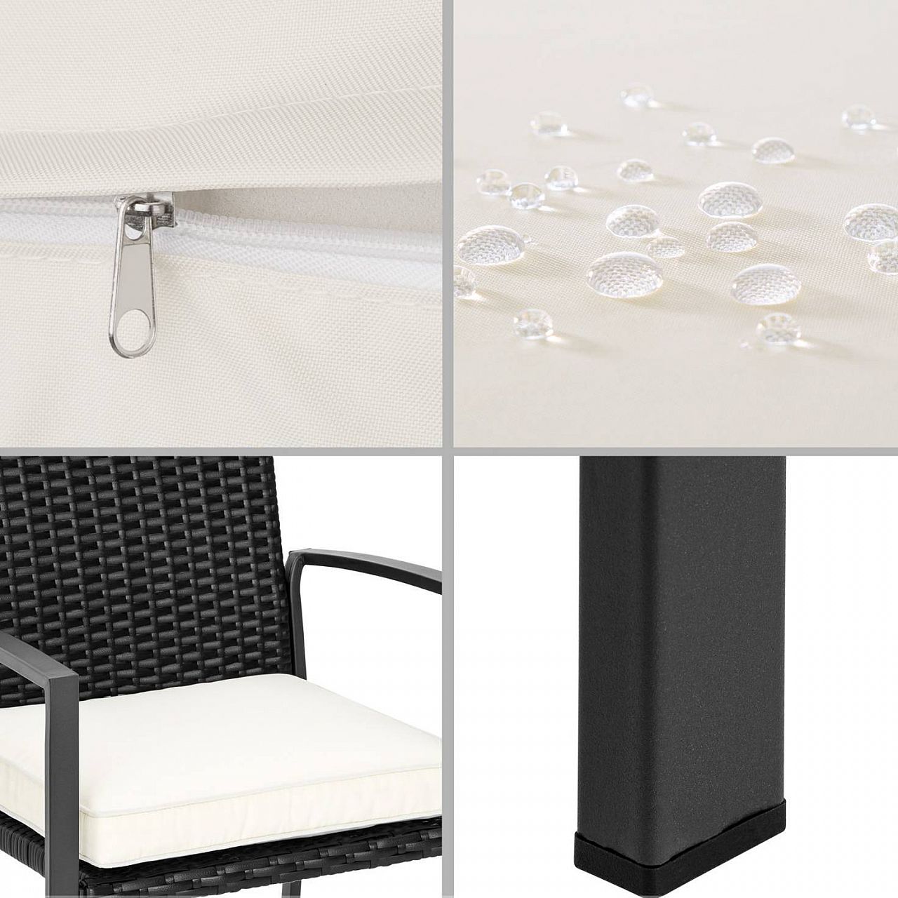 Проведіть чудовий час із сім'єю або друзями, використовуючи тектакетний набір садових меблів. Сідайте в одне зі злегка зігнутих стільців, які створюють чудову атмосферу для денного відпочинку. Каркас із сталі з порошковим покриттям покритий обплетенням із поліратану. Весь комплект садових меблів завдяки компактності навіть на невеликих балконах. Стабільний стіл із темною скляною стільницею поєднується зі стільцями в єдине ціле. Розслабтеся, розслабтеся та насолоджуйтесь садовими меблями від тектакету.