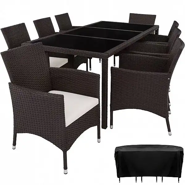 Зручні крісла та елегантний столик спонукають вас провести час на свіжому повітрі. Наші садові меблі вражають не тільки елегантним зовнішнім виглядом, але й комфортом та довговічністю. Завдяки невеликій вазі меблі можна легко транспортувати та зберігати. Поверхня столу дуже елегантна та легко миється. Дуже зручні бежеві сидіння з поліестеру підібрані до натурального кольору ротанга, застібаються ззаду на блискавку, тому ви можете легко чистити оббивку. Щоб захистити подушку від попадання вологи, поверхня чохлів була просочена, тому бруд та краплі води просто стікають униз.