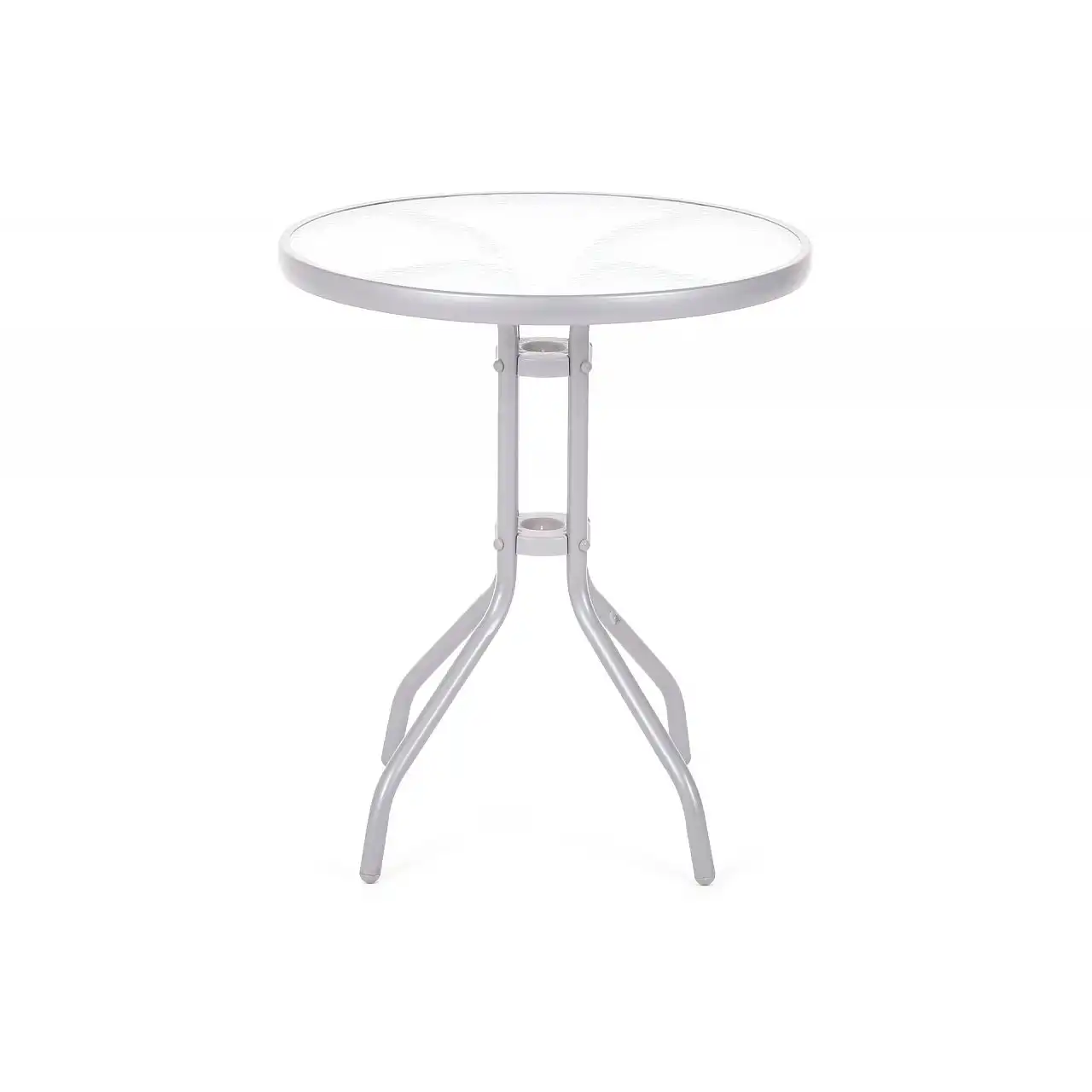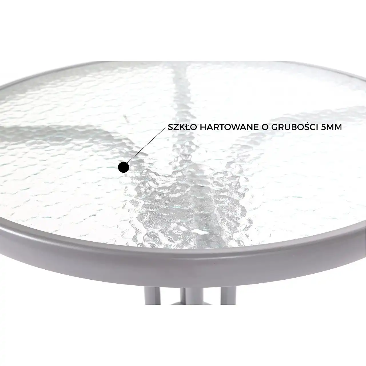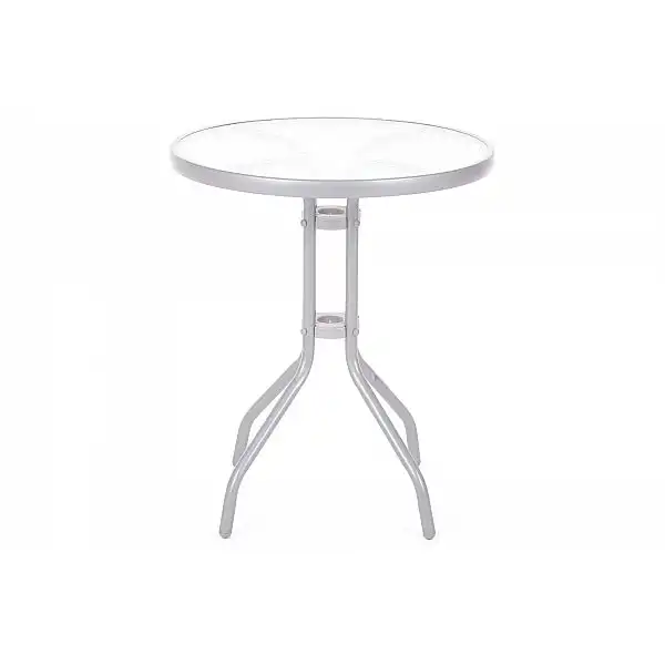 Стіл ідеально підходить для балкона, тераси або саду, а також для ресторанів і кондитерських - кафе. Ніжки столу виготовлені з металу з порошковим покриттям, а стільниця – із загартованого декоративного скла. Стільниця діаметром 60 см.