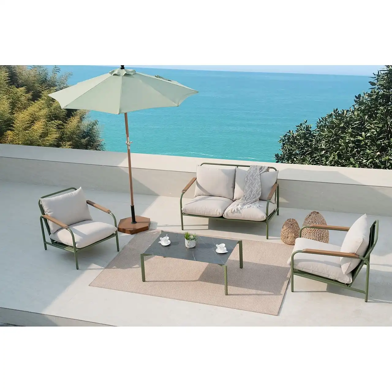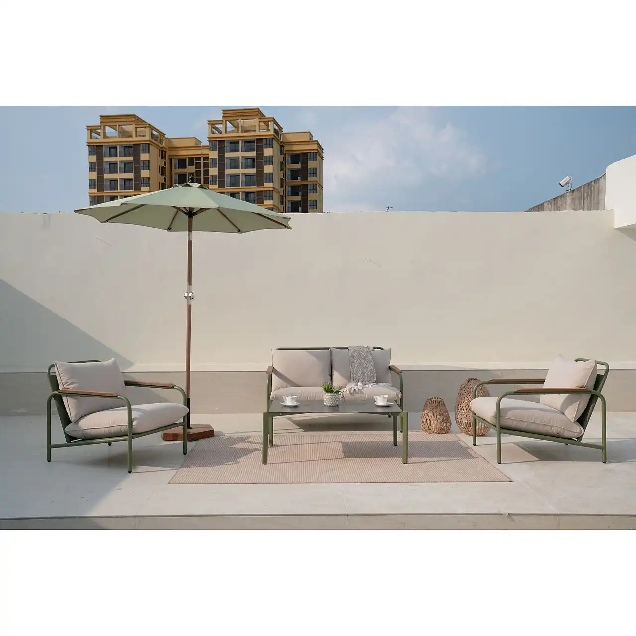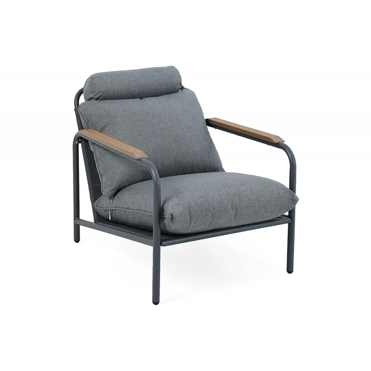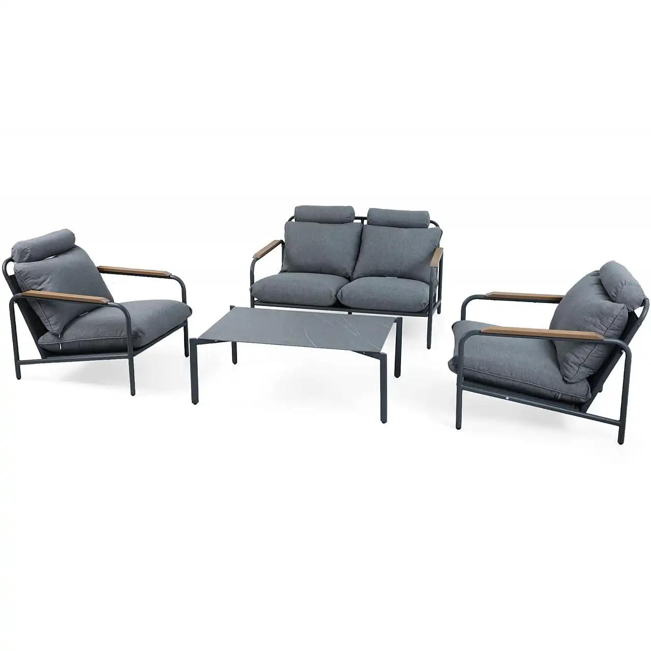 Комплект Como – ідеальний вибір для поціновувачів сучасного дизайну та комфорту. Меблі виготовлені з високоякісного алюмінію, який стійкий до погодних умов і простий у догляді. Легка конструкція робить їх зручними для перенесення, а товсті подушки забезпечують комфортний відпочинок.
