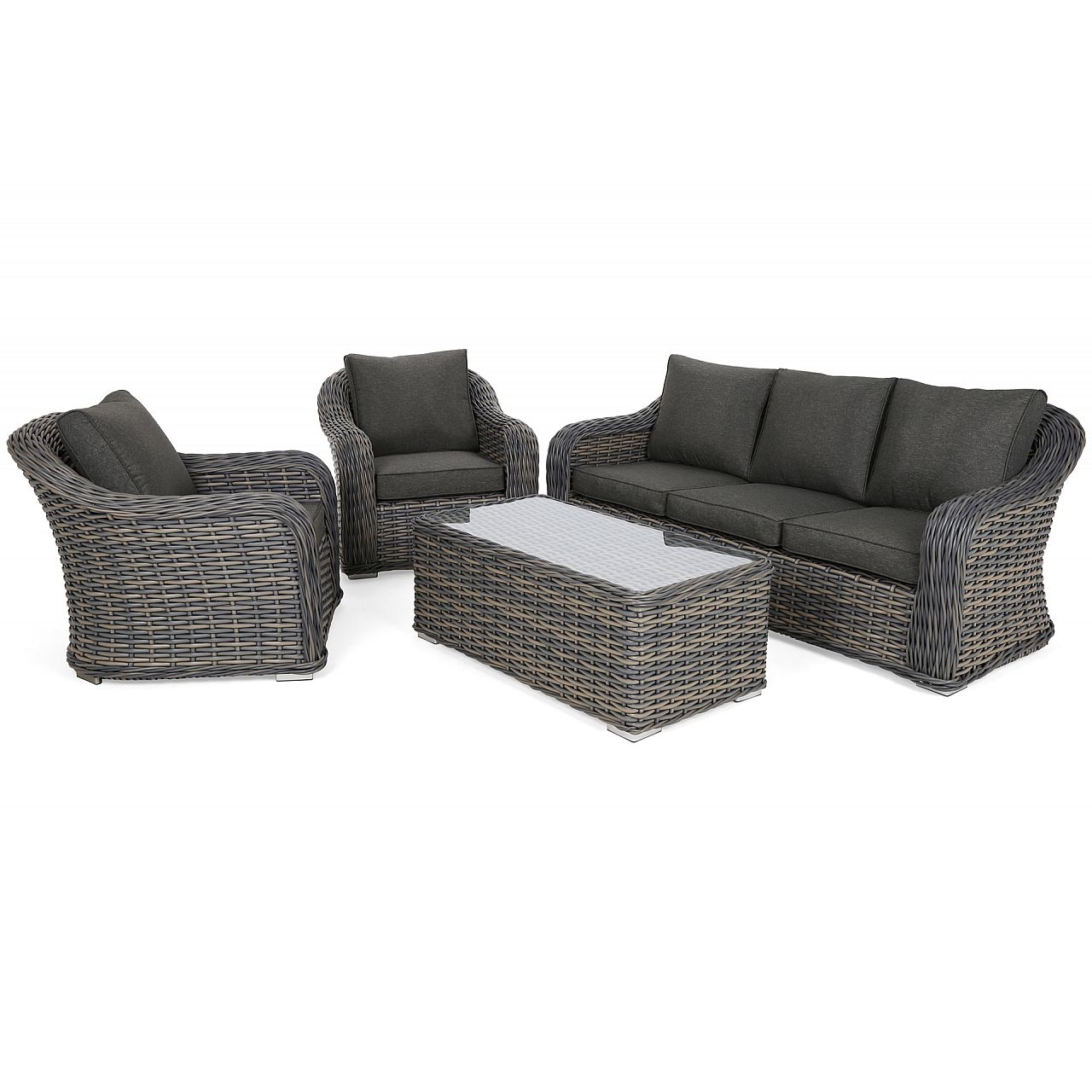 Комплект садових меблів Foggia складається з дивана, двох крісел та столу. Це дозволить вам легко створити зону відпочинку у вашому саду, на терасі чи балконі. Це чудовий вибір для тих, хто цінує високоякісні та естетично привабливі садові меблі.
