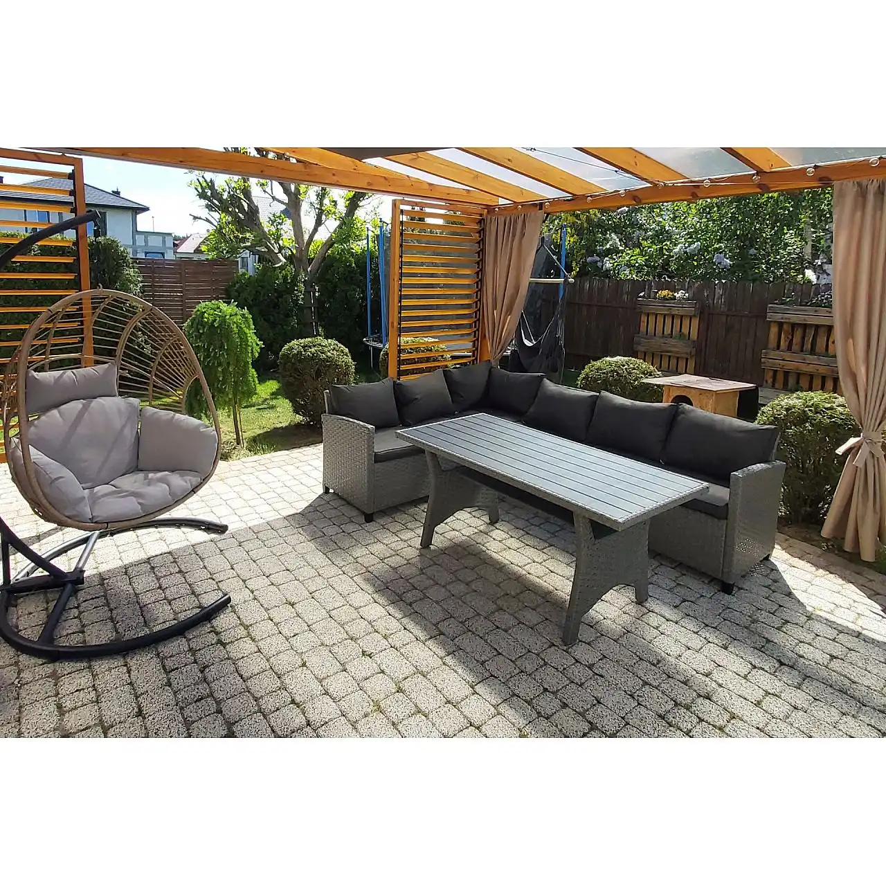 Меблі Lagos забезпечать вам комфортний відпочинок на природі. Зручні крісла, кутовий диван, пуф, м'які подушки та сидіння - все це сприяє відпочинку в колі сім'ї та друзів. Набір ідеально підходить як для застілля, так і для відпочинку в сонячні дні.