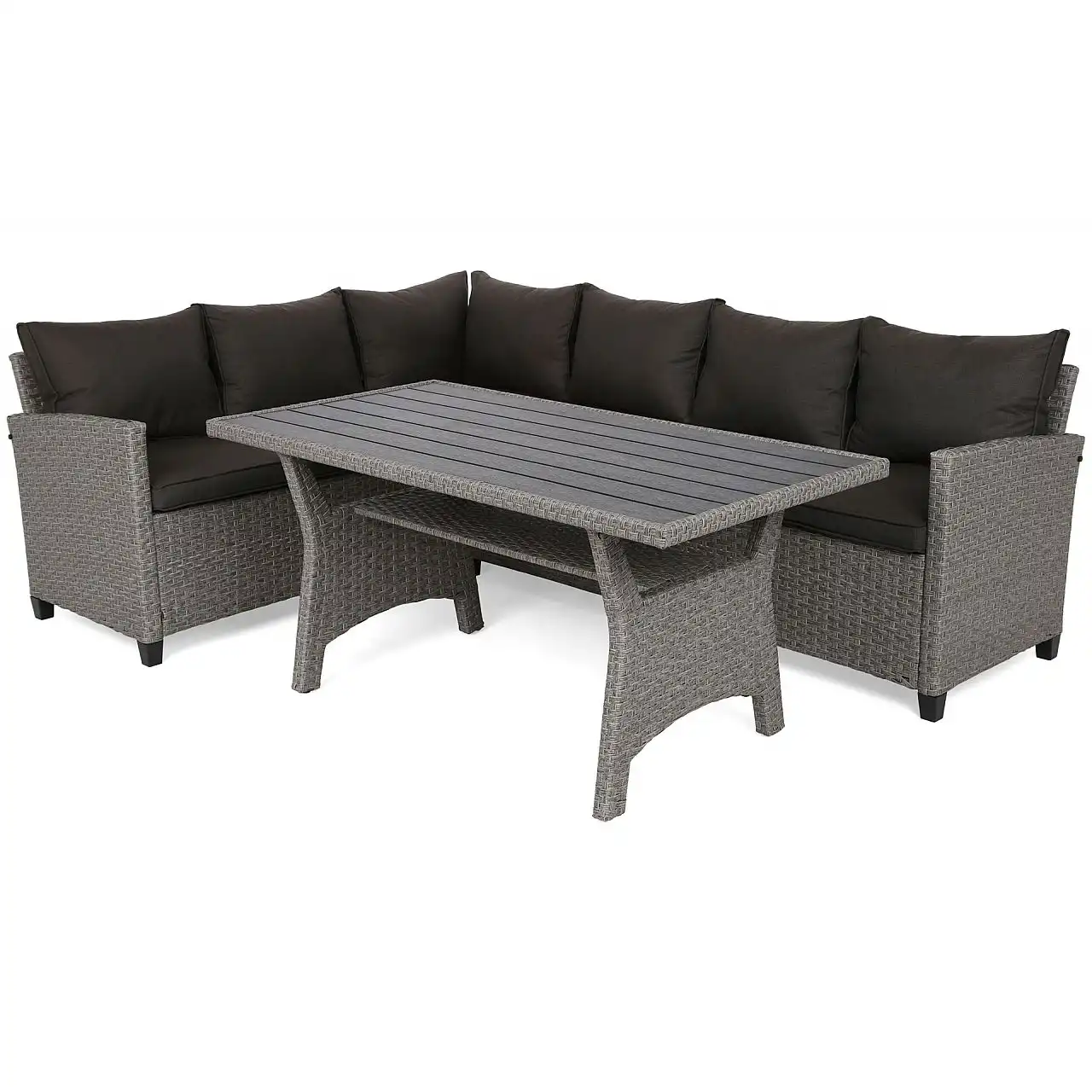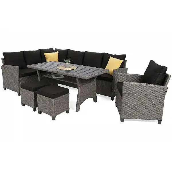 Шукаєте садові меблі, які поєднують у собі міцність, комфорт та елегантність? Вибирайте кутові садові меблі Lagos з техноротангу! Техноратанг витримує різні погодні умови, йому не страшні ні дощ, ні сніг, ні мороз, ні палюче сонце. Забудьте про вицвітання та розтріскування - меблі Lagos збережуть свій прекрасний зовнішній вигляд протягом багатьох сезонів. Легка конструкція дозволяє їх легко переміщати і зберігати.За техноратангом легко доглядати - просто протріть його вологою ганчіркою.