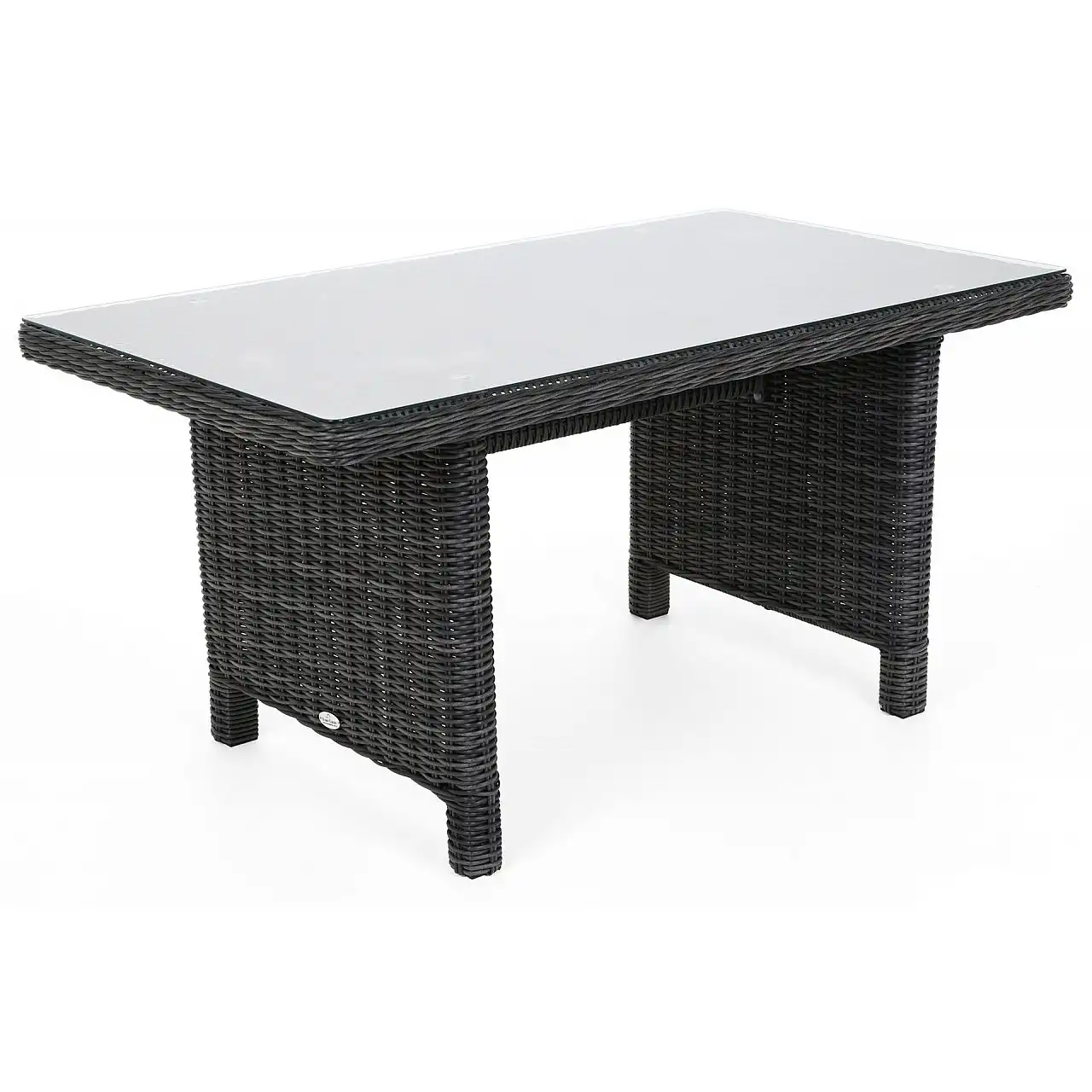Сірий садовий кутовий диван з техноратангу Аліканте також складається зі столика. Ви можете легко підтримувати його в чистоті, не турбуючись про пошкодження. Це все завдяки покриттю з техноратангу та обробці із загартованого скла товщиною 5 мм, що забезпечує безпеку використання.