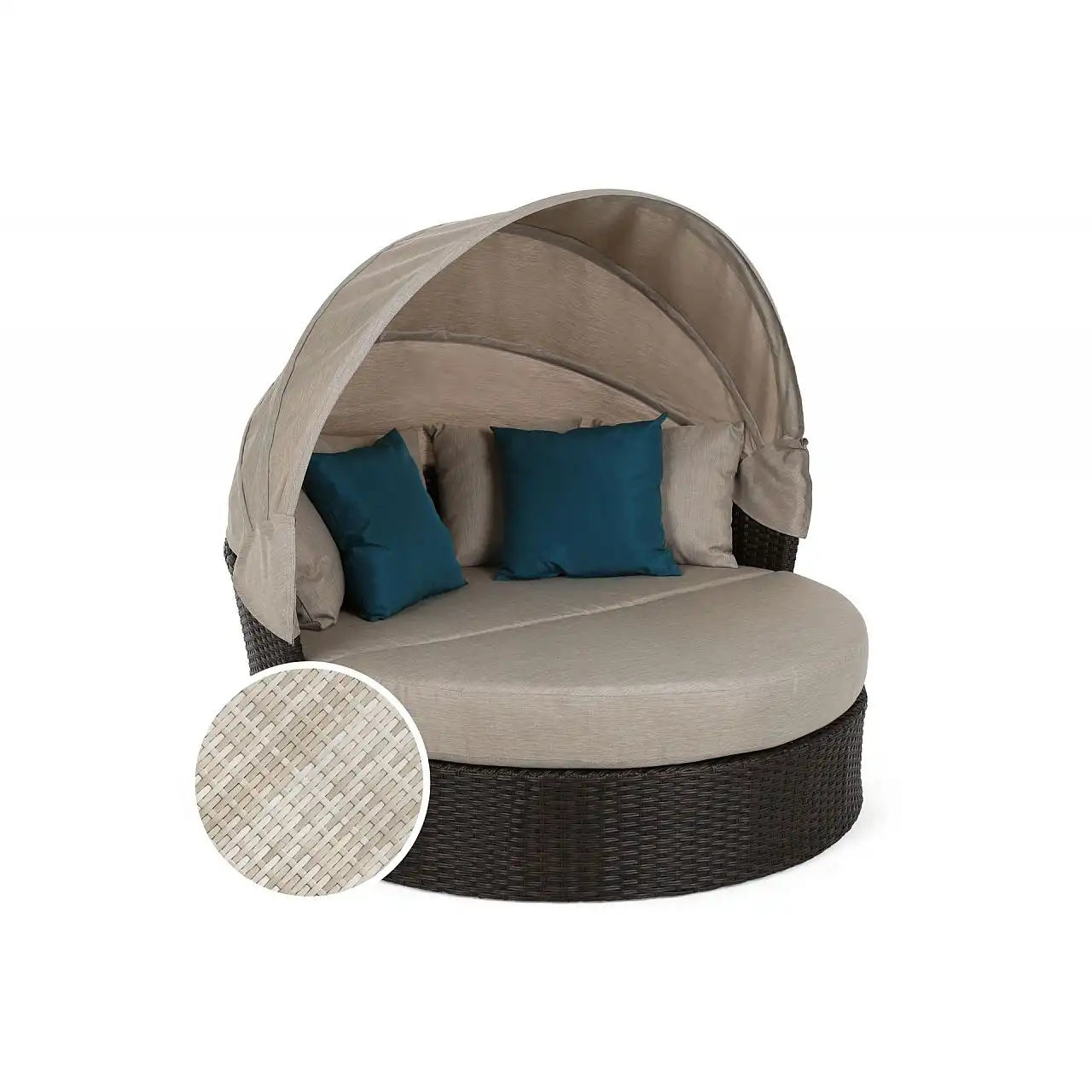 Диван з колекції Sydney чудово впишеться в сучасне облаштування тераси. Найпривабливішими елементами дивана, безумовно, є розкладний балдахін і кругла форма. Також варто відзначити місце для зберігання речей під сидінням, завдяки якому меблі можна легко трансформувати в зручний двомісний шезлонг, шезлонг з балдахіном, а також садову лавку або пляжний кошик.