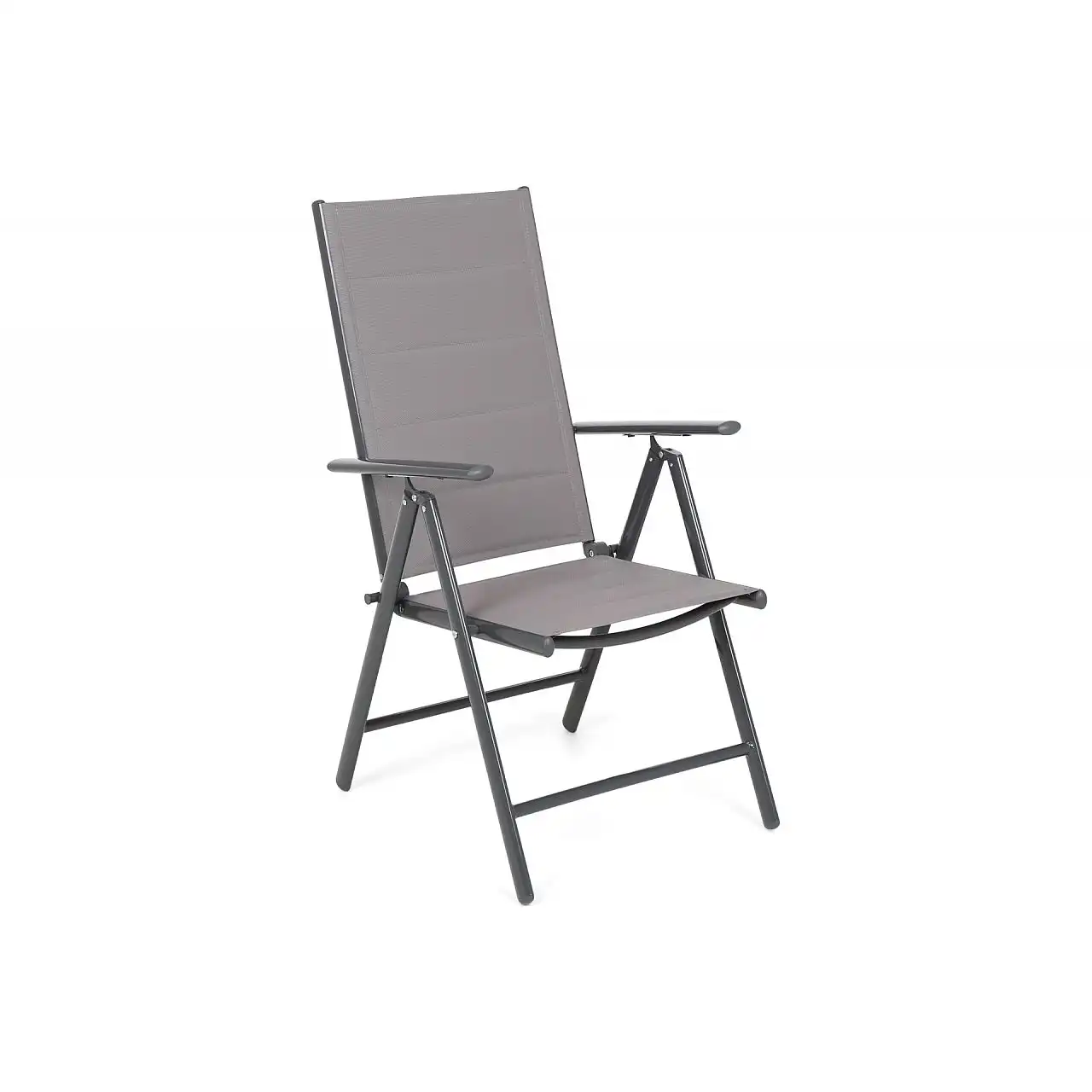 Розкладні крісла з регулюванням спинки в семи положеннях оббиті з двох сторін тканиною текстелін, яка не линяє, не деформується, не вбирає вологу і швидко сохне. П'ятикратна стьобана спинка і чотириразове стьобане сидіння ідеально поєднуються зі стільницею. Використаний для виготовлення стільців ватний наповнювач відповідної товщини значно підвищує комфорт використання.