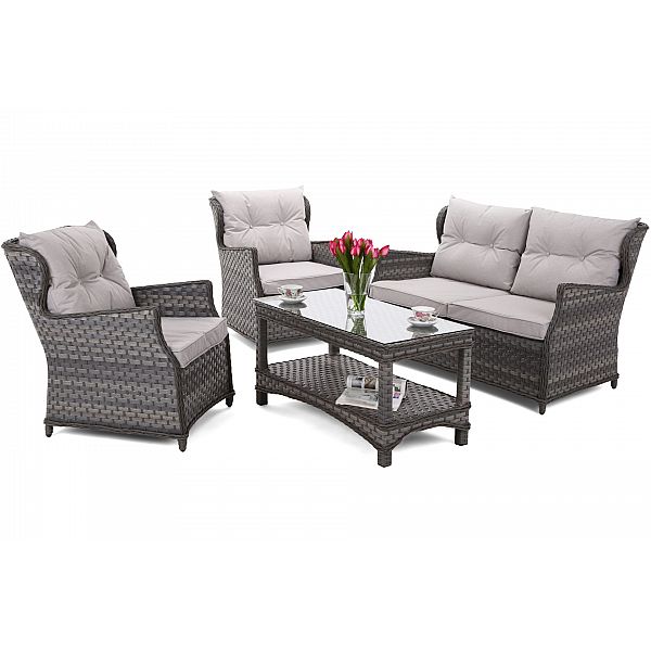 «Сієна» — комфортний лаунж-комплект для 4 осіб на балконі або терасі. Комплект складається з двох крісел, журнального столика та двомісного дивана.