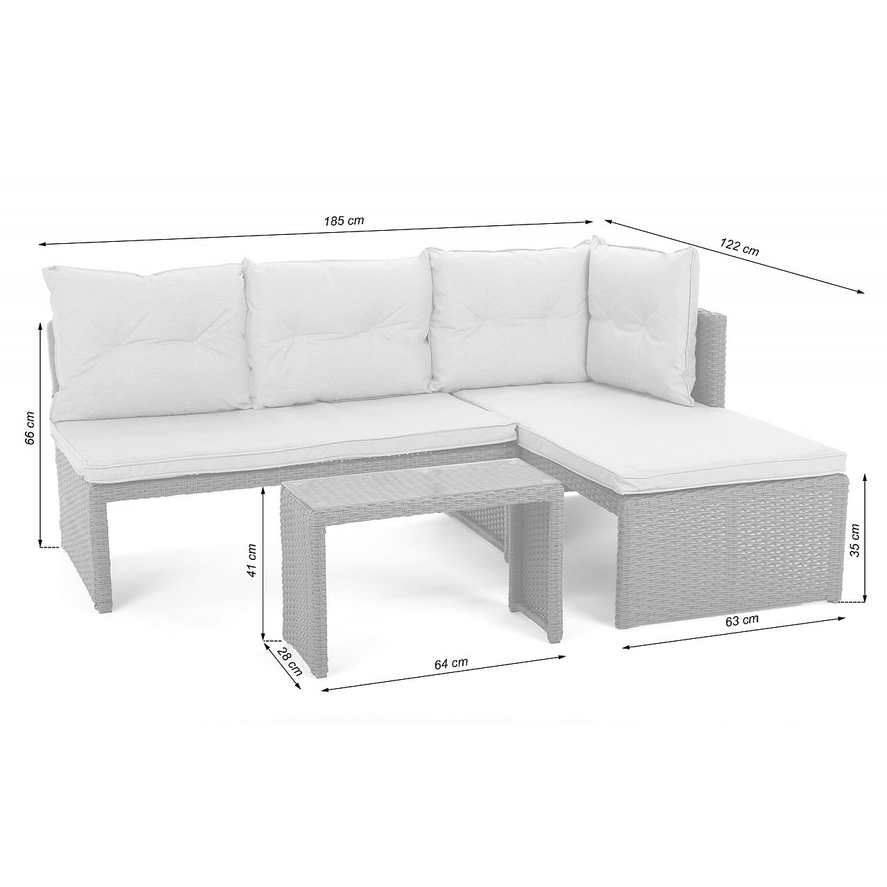 Садовий кутовий диван Corte виготовлений з техноратангу, що робить його стійким до несприятливих погодних умов, опадів і УФ-випромінювання. Утримувати меблі в чистоті надзвичайно просто, і вони не потребують просочення. Щоб забезпечити максимально можливий комфорт для наших клієнтів, ми включаємо спеціальні подушки в набір для відпочинку. Тканина наволочок просочена, тому вам не доведеться турбуватися про бруд або вологу. Стільниця виготовлена із загартованого скла, що робить його стійким до пошкоджень і подряпин.