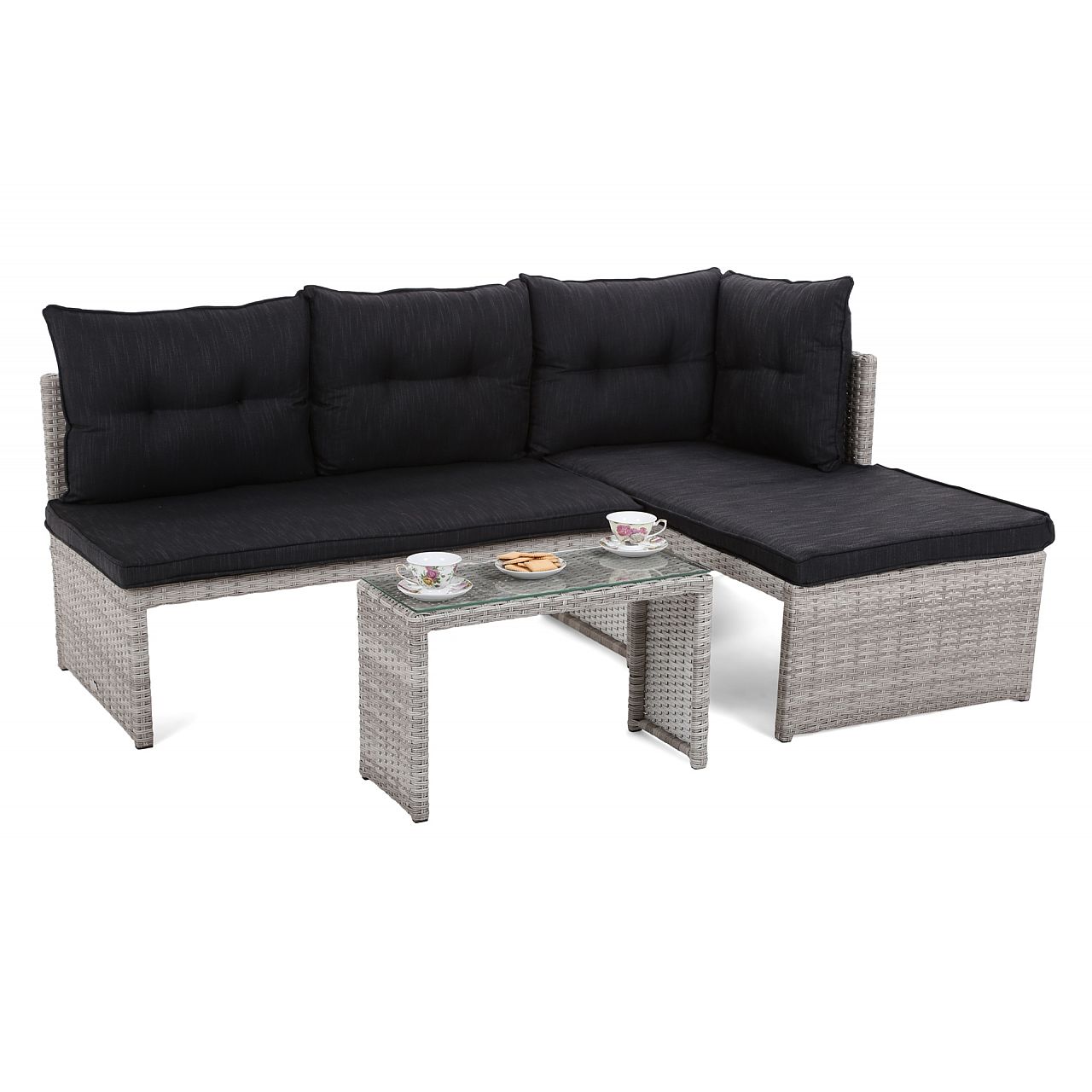 Унікальний садовий куточок Corte - це продукт, який поєднує в собі продуману функціональність і унікальний дизайн. Конструкційний матеріал - м'який, але міцний і міцний техноратан в поєднанні з міцними металевими профілями. Для повного комфорту наших клієнтів ми включаємо в комплект спеціальні подушки.
