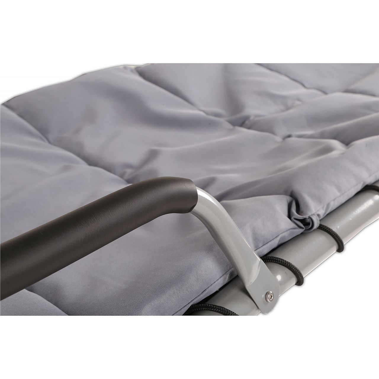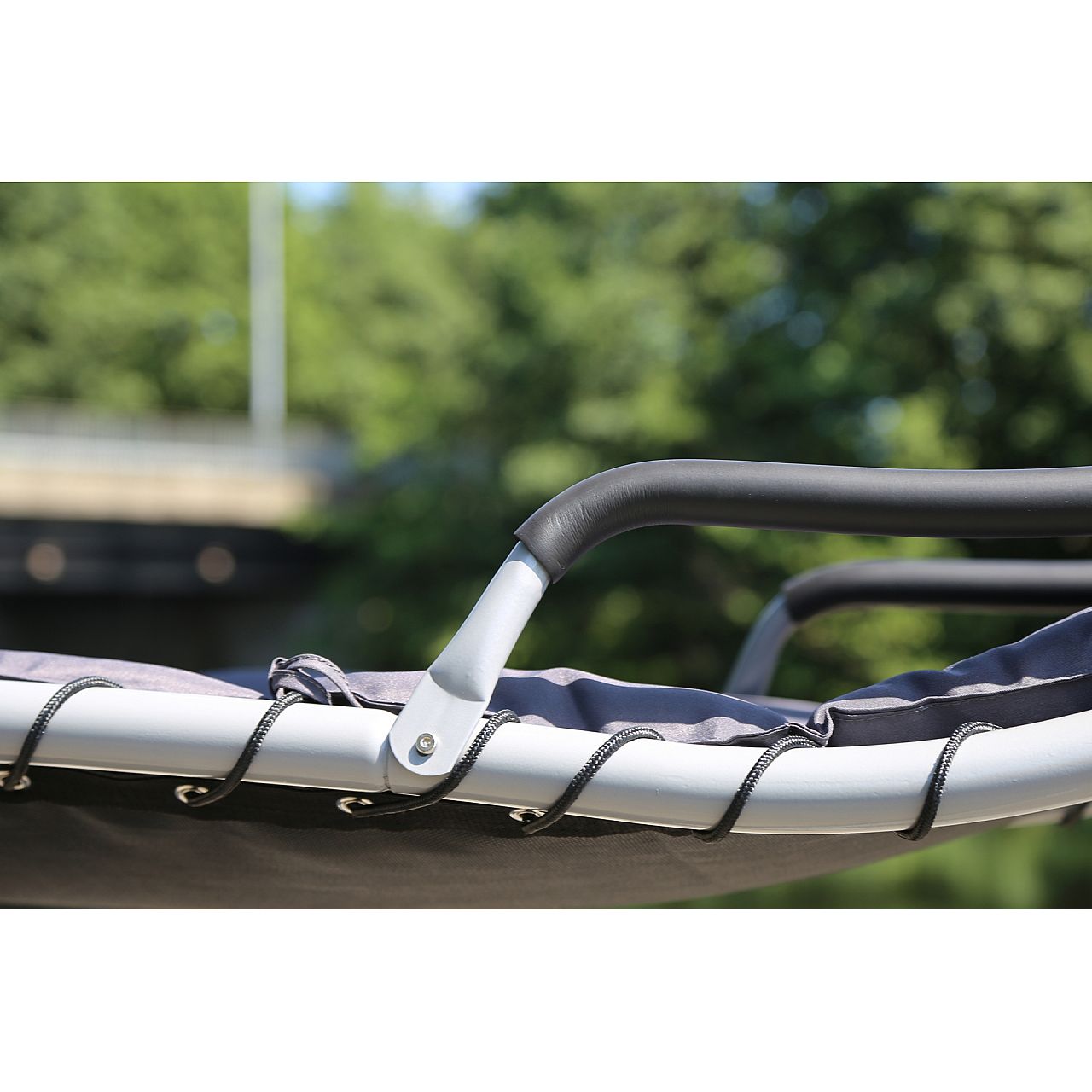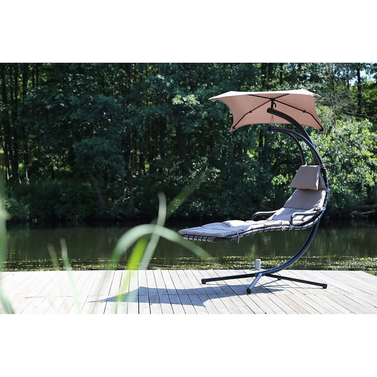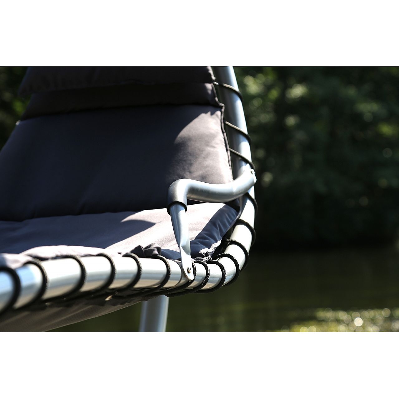 Підвісний шезлонг Neil - це не тільки практичний предмет меблів для відпочинку , але й елемент сучасного дизайну в нашому саду. Його цікавий зовнішній вигляд і приглушені кольори ідеально впишуться в декор практично будь-якої тераси, саду або навіть більшого балкона. Міцна сталева конструкція всієї рами кушетки покрита порошковою фарбою, що робить меблі дуже міцними та стійкими не лише до погодних умов (вона не іржавіє!), а й до подряпин та вм’ятин. Кушетка покрита текстильною сіткою, натягнутою на каркас мотузкою. Комфортний відпочинок гарантує м'яка поліестерова подушка з підголовником і ременями для кріплення. Підвісний шезлонг також має сонцезахисний навіс , положення якого можна регулювати.