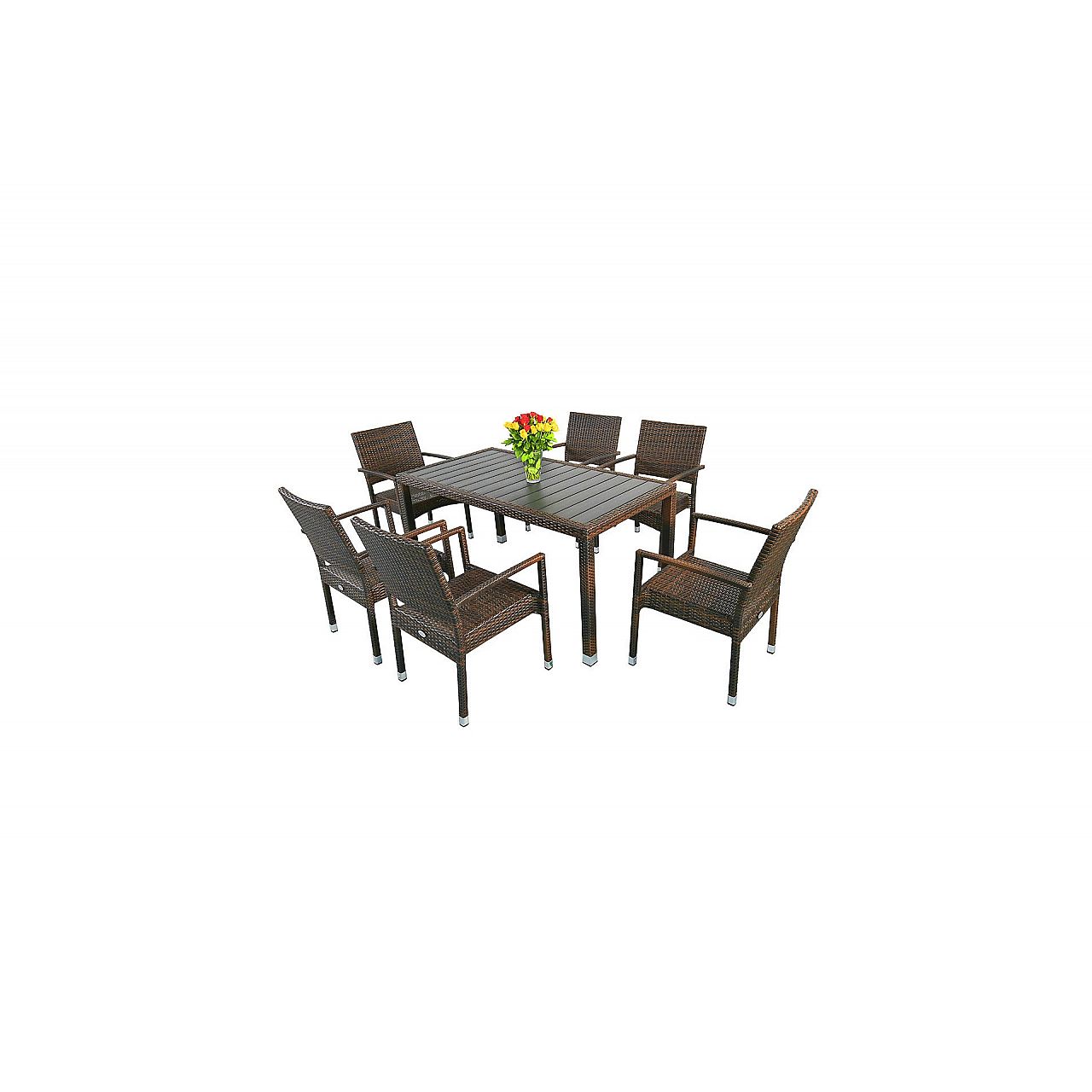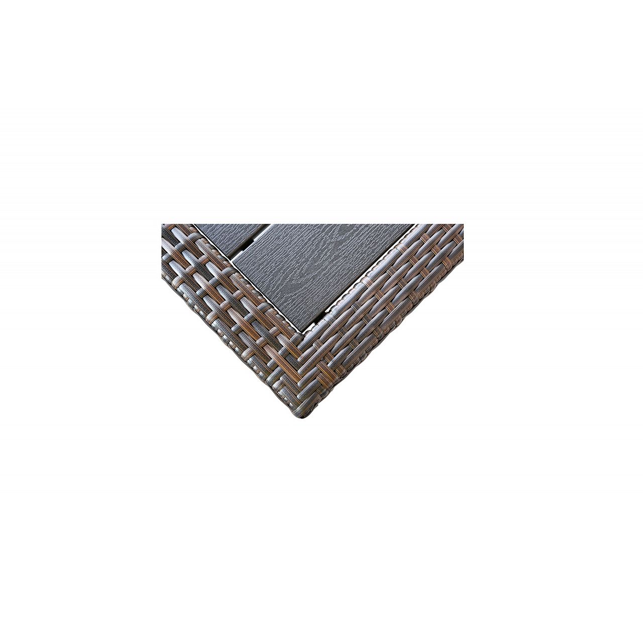 Садові меблі з техноротангу Doris - надзвичайно функціональний і дуже зі смаком набір. Відрізняється високою якістю виконання та ретельною обробкою. Конструкція стільців і столу виконана з товстих алюмінієвих профілів, пофарбованих порошковою фарбою, а покриття - з міцного техноротанга, стійкого до несприятливих погодних умов. Стільниця виготовлена з композитних плит WPC, які стійкі до вологи, бруду та УФ-променів. Меблі підійдуть як на вулиці (сад, тераса, балкон), так і всередині будинку, кафе чи ресторану. Їх ексклюзивний характер підкреслюється алюмінієвими торцями стільців і ніжок столу, а також їх елегантною і ретельною обробкою.