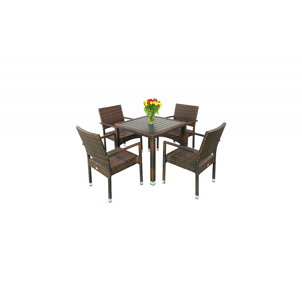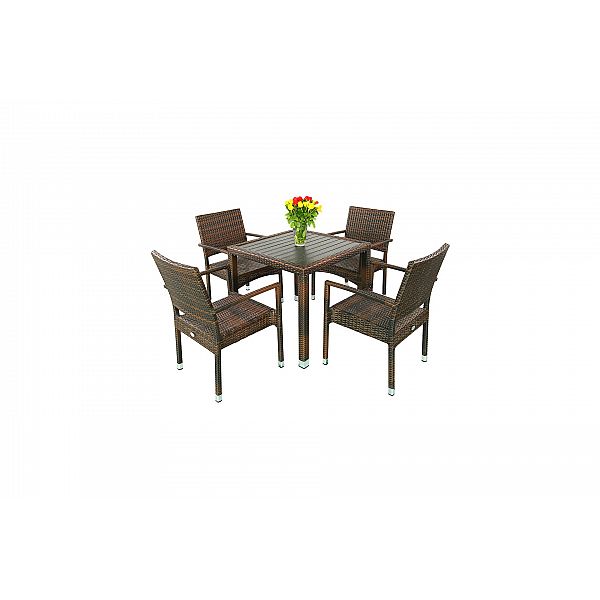 Садові меблі з техноротангу Doris - надзвичайно функціональний і дуже зі смаком набір. Відрізняється високою якістю виконання та ретельною обробкою. Конструкція стільців і столу виконана з товстих алюмінієвих профілів, пофарбованих порошковою фарбою, а покриття - з міцного техноротанга, стійкого до несприятливих погодних умов. Стільниця виготовлена з композитних плит WPC, які стійкі до вологи, бруду та УФ-променів. Меблі підійдуть як на вулиці (сад, тераса, балкон), так і всередині будинку, кафе чи ресторану. Їх ексклюзивний характер підкреслюється алюмінієвими торцями стільців і ніжок столу, а також їх елегантною і ретельною обробкою.