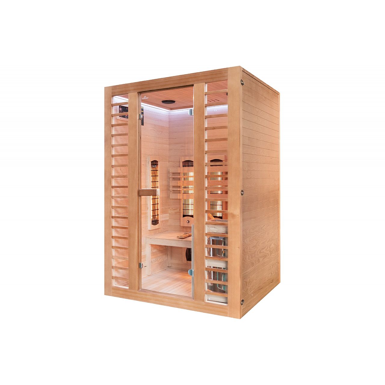 Комбі-сауна з канадської ялиці - це поєднання фінської та інфрачервоної сауни в одному пристрої. Одного дня скористайтеся корисними властивостями фінської сауни, а наступного дня подбайте про свої м'язи або зніміть біль за допомогою випромінювачів інфрачервоної сауни. Піч нагріває повітря до 90°C, а кварцові радіатори забезпечать вам ванну з температурою до 60°C. Користуватися інфрачервоною сауною можна навіть щодня, а фінську сауну рекомендується відвідувати раз на тиждень. Однак пам’ятайте, що не можна використовувати два джерела тепла одночасно, це може призвести до збоїв.