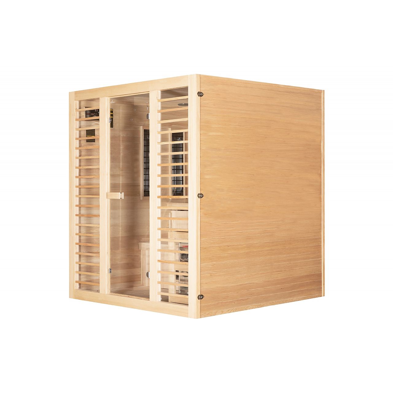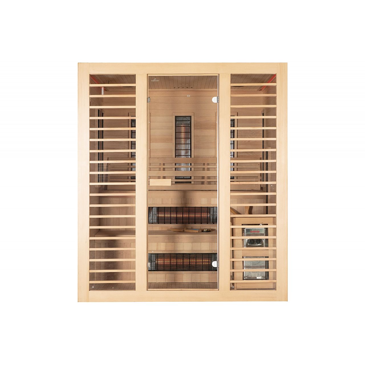 Комбі-сауна з канадської ялиці - це поєднання фінської та інфрачервоної сауни в одному пристрої. Одного дня скористайтеся корисними властивостями фінської сауни, а наступного дня подбайте про свої м'язи або зніміть біль за допомогою випромінювачів інфрачервоної сауни. Піч нагріває повітря до 90°C, а кварцові радіатори забезпечать вам ванну з температурою до 60°C. Користуватися інфрачервоною сауною можна навіть щодня, а фінську сауну рекомендується відвідувати раз на тиждень. Однак пам’ятайте, що не можна використовувати два джерела тепла одночасно, це може призвести до збоїв.