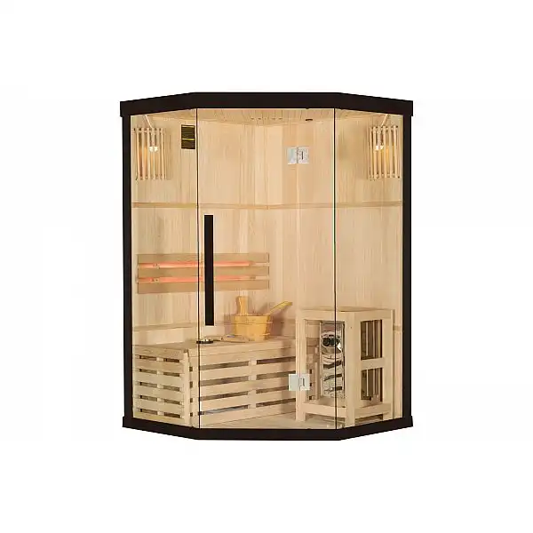 | Обладнання | • внутрішнє освітлення з окремою вилкою • плита і каміння • відро з черпаком для води для посипання каміння • гігрометр (вимірювання вологості) • пісочний годинник (для вимірювання часу відвідування сауни) • додаткове RGB LED освітлення |