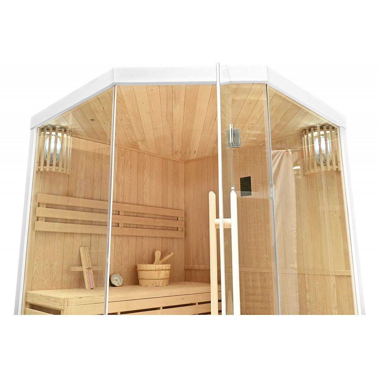 Обладнання | • внутрішнє освітлення • піч і каміння • відро з черпаком для поливання каміння • гігрометр (вимірювання вологості) • пісочний годинник (для вимірювання часу відвідування сауни) |
