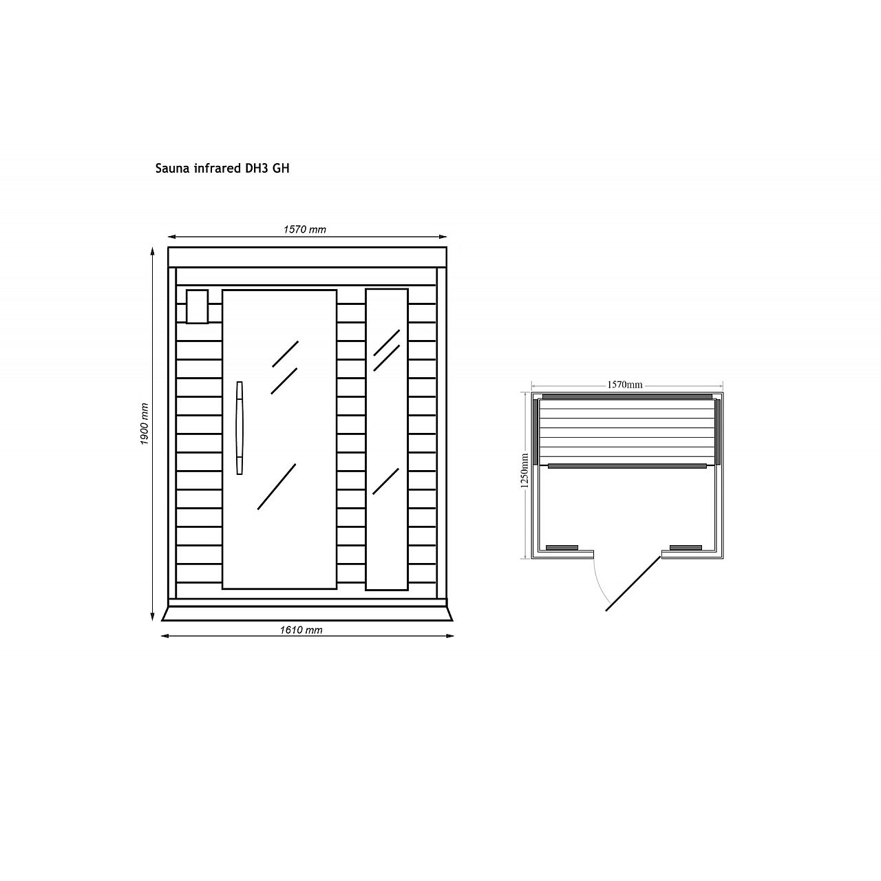 Інфрачервона сауна (інфрачервона, низькотемпературна) без пари і з низькою температурою повітря (до 60°C), де замість традиційних печей використовуються кварцові, керамічні або вугільні інфрачервоні обігрівачі. Кабіну з канадської ялиці можна встановити у ванній, спальні, вітальні або будь-якій іншій кімнаті. Для роботи достатньо звичайного джерела живлення 230В. Після ввімкнення сауна налаштована на заводі на 60 хвилин. Він має автоматичний вимикач, який запобігає випадковому залишанню сауни увімкненою на надто довгий час, що робить її безпечною у використанні. Радіатори захищені дерев'яними сітками.