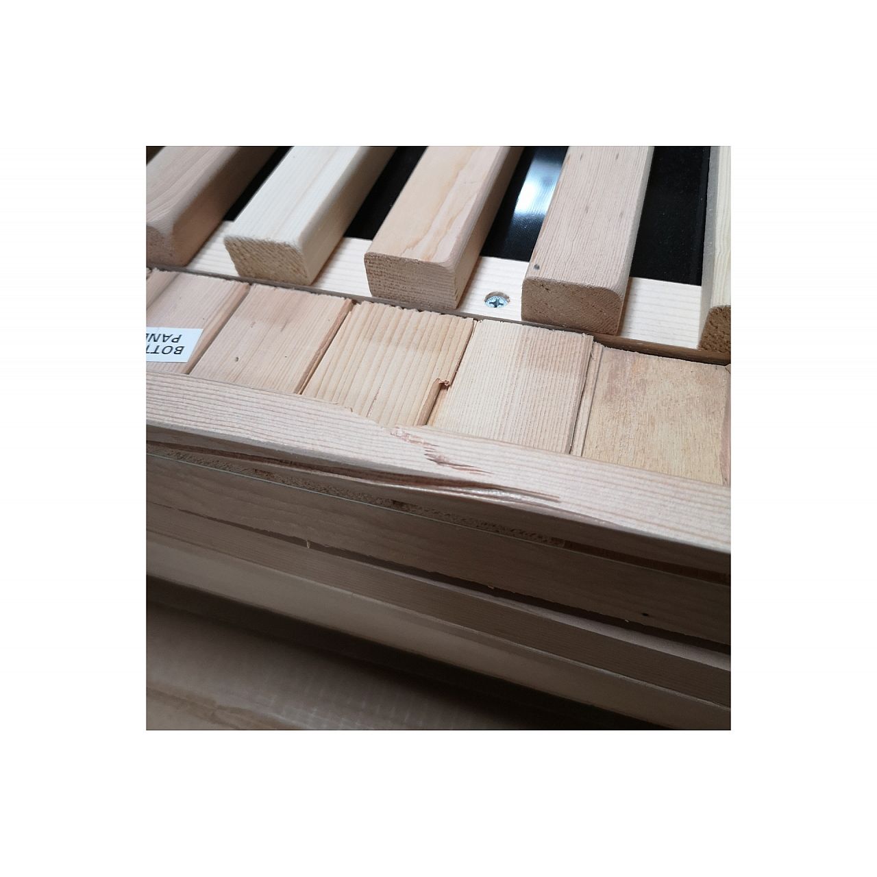 Виріб другої якості - зламана планка на елементі підлоги (з боку входу) та пошкоджена права бічна стінка (вгорі елемента). Пошкодження видно на фото в галереї.