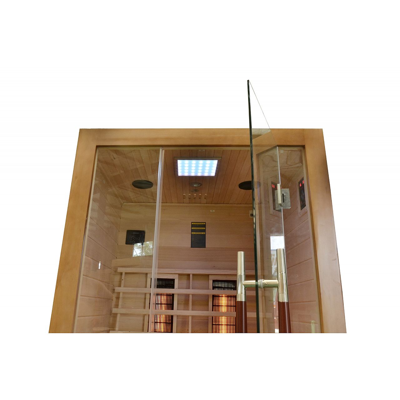 Інфрачервона сауна (інфрачервона, низькотемпературна) без пари і з низькою температурою повітря (до 60°C), де замість традиційних печей використовуються кварцові, керамічні або вугільні інфрачервоні обігрівачі. Кабіну з канадської ялиці можна встановити у ванній, спальні, вітальні або будь-якій іншій кімнаті. Для роботи достатньо звичайного джерела живлення 230В. Після ввімкнення сауна налаштована на заводі на 60 хвилин. Він має автоматичний вимикач, який запобігає випадковому залишанню сауни увімкненою на надто тривалий час, що робить її безпечною у використанні. Радіатори захищені дерев'яними сітками.