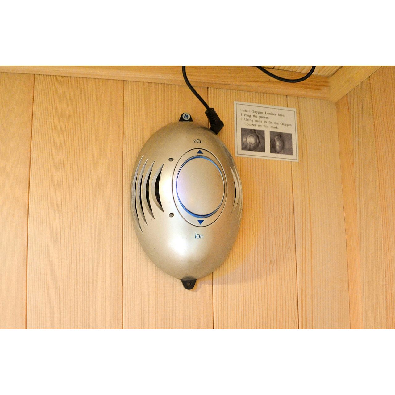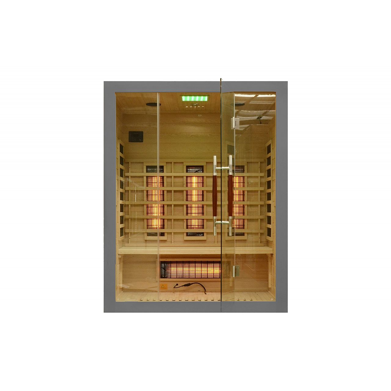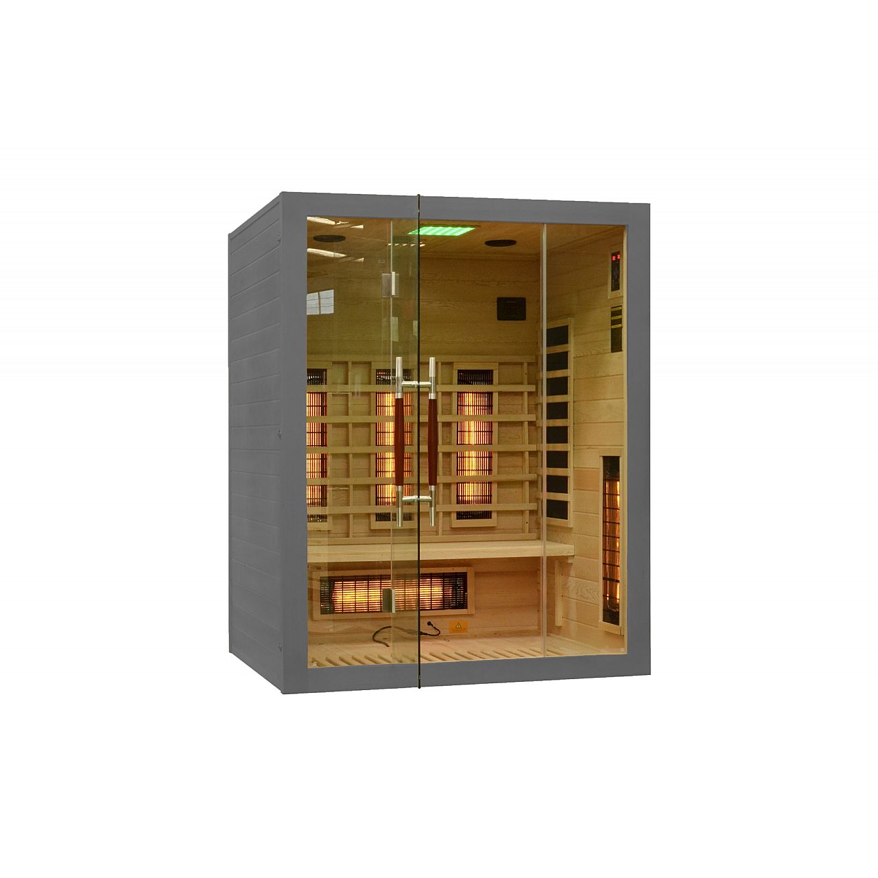 Інфрачервона сауна (інфрачервона, низькотемпературна) без пари і з низькою температурою повітря (до 60°C), де замість традиційних печей використовуються кварцові, керамічні або вугільні інфрачервоні обігрівачі. Кабіну з канадської ялиці можна встановити у ванній, спальні, вітальні або будь-якій іншій кімнаті. Для роботи достатньо звичайного джерела живлення 230В. Після ввімкнення сауна налаштована на заводі на 60 хвилин. Він має автоматичний вимикач, який запобігає випадковому залишанню сауни увімкненою на надто довгий час, що робить її безпечною у використанні. Радіатори захищені дерев'яними сітками.