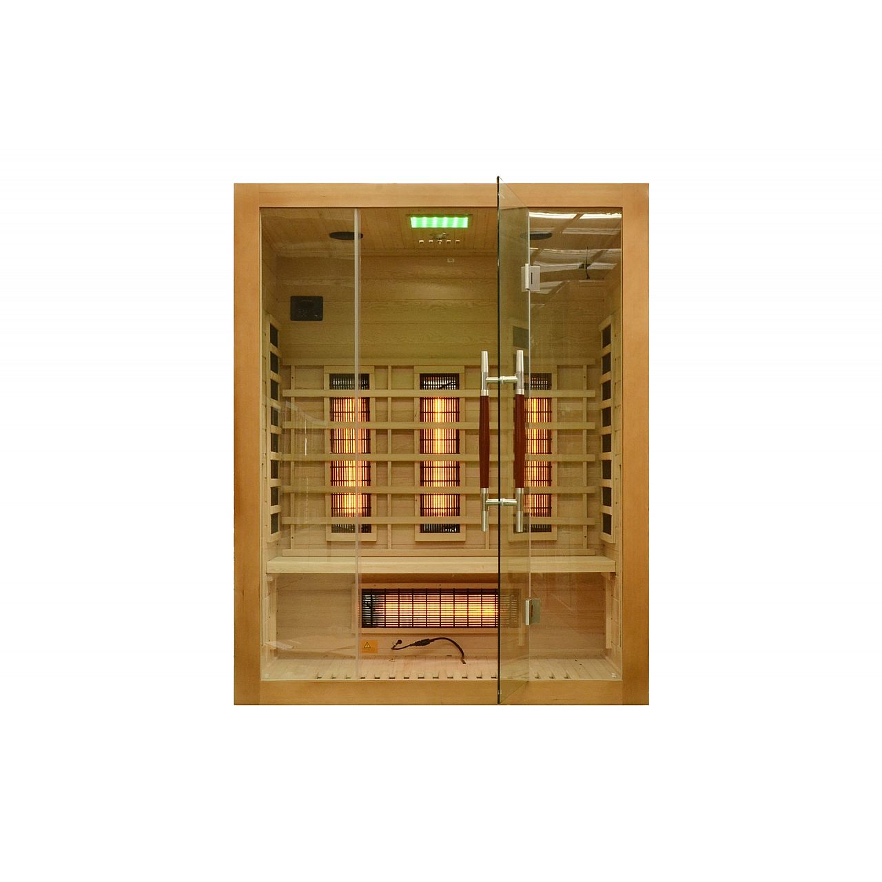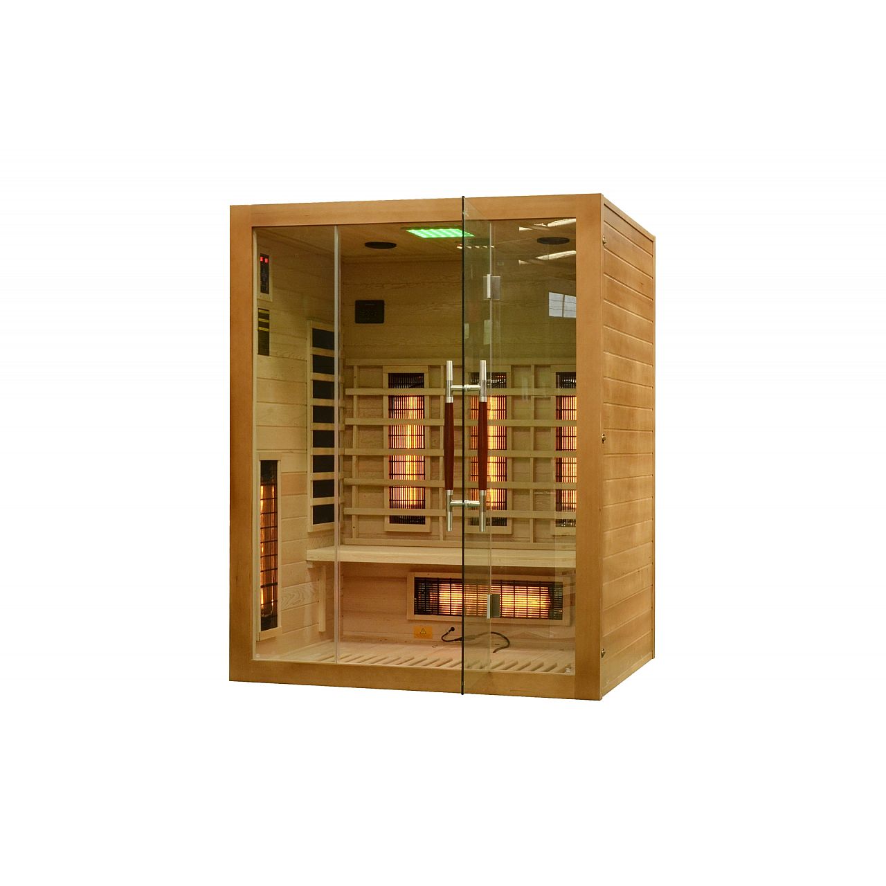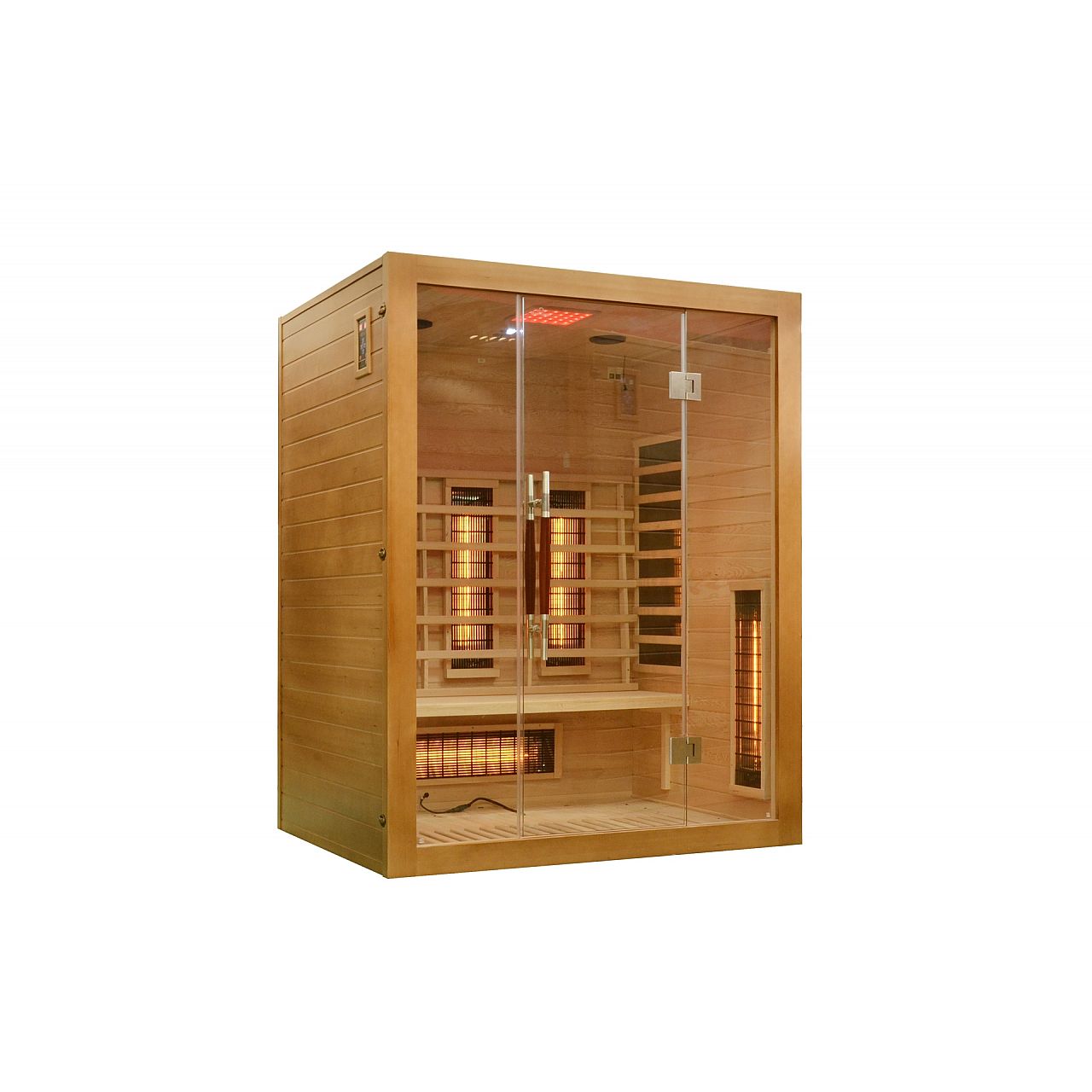 Інфрачервона сауна (інфрачервона, низькотемпературна) без пари і з низькою температурою повітря (до 60°C), де замість традиційних печей використовуються кварцові, керамічні або вугільні інфрачервоні обігрівачі. Кабіну з канадської ялиці можна встановити у ванній, спальні, вітальні або будь-якій іншій кімнаті. Для роботи достатньо звичайного джерела живлення 230В. Після ввімкнення сауна налаштована на заводі на 60 хвилин. Він має автоматичний вимикач, який запобігає випадковому залишанню сауни увімкненою на надто довгий час, що робить її безпечною у використанні. Радіатори захищені дерев'яними сітками.