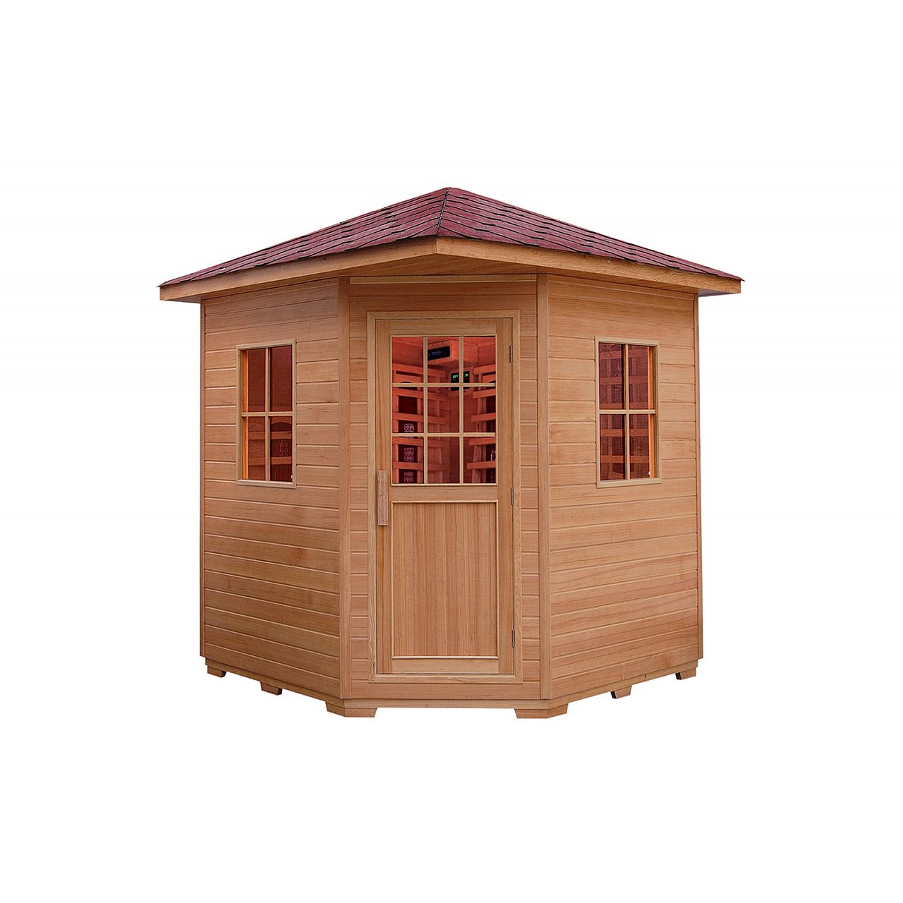 Інфрачервона сауна (інфрачервона, низькотемпературна) без пари і з низькою температурою повітря (до 60°C), де замість традиційних печей використовуються кварцові, керамічні або вугільні інфрачервоні обігрівачі. Кабіну з канадської ялиці можна встановити у ванній, спальні, вітальні або будь-якій іншій кімнаті. Для роботи достатньо звичайного джерела живлення 230В. Після ввімкнення сауна налаштована на заводі на 60 хвилин. Він має автоматичний вимикач, який запобігає випадковому залишанню сауни увімкненою на надто тривалий час, що робить її безпечною у використанні. Радіатори захищені дерев'яними сітками.