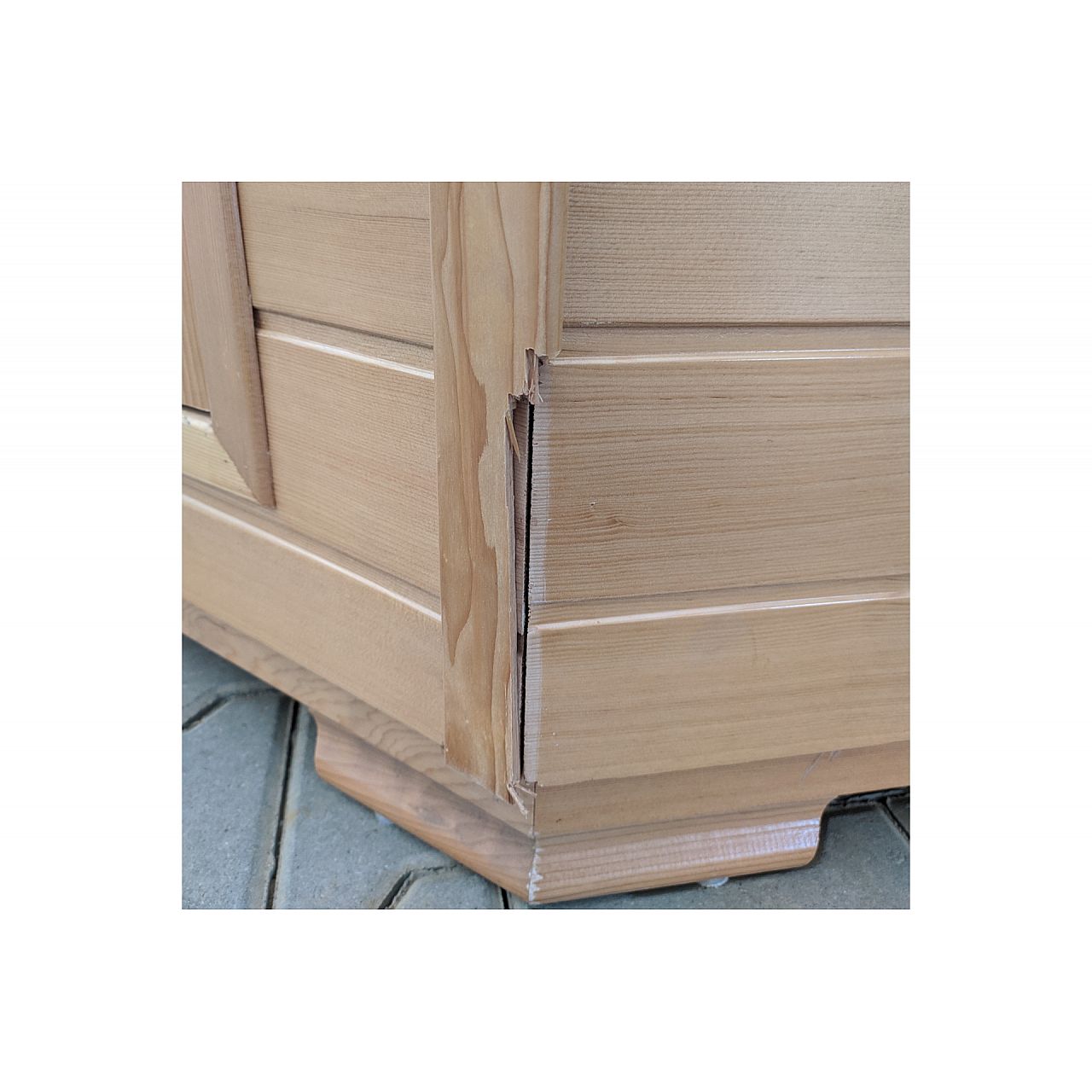 Сауна в II. види! Невеликий дефект на краю передньої стінки, подряпини та потертості на верхньому елементі сауни та відсутність гонту. Пошкодження видно на фото в галереї.