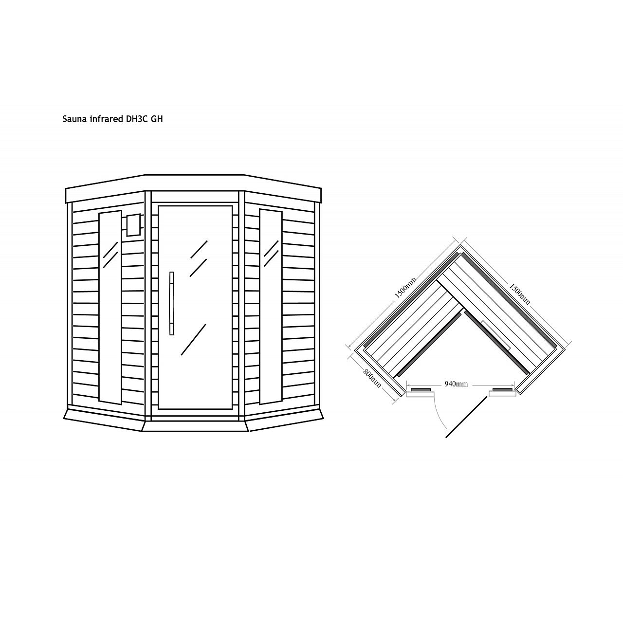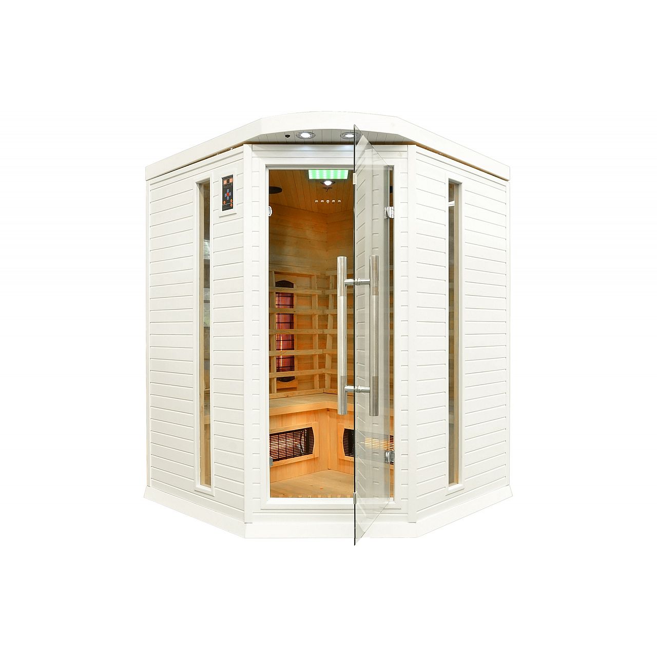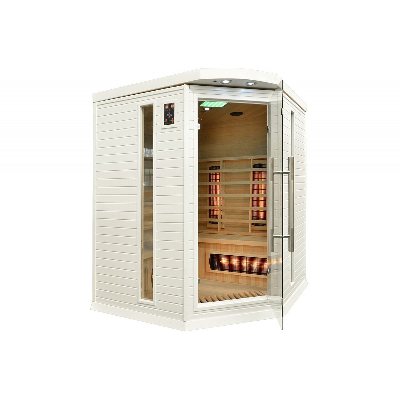 Інфрачервона сауна (інфрачервона, низькотемпературна) без пари і з низькою температурою повітря (до 60°C), де замість традиційних печей використовуються кварцові, керамічні або вугільні інфрачервоні обігрівачі. Кабіну з канадської ялиці можна встановити у ванній, спальні, вітальні або будь-якій іншій кімнаті. Для роботи достатньо звичайного джерела живлення 230В. Після ввімкнення сауна налаштована на заводі на 60 хвилин. Він має автоматичний вимикач, який запобігає випадковому залишанню сауни увімкненою на надто тривалий час, що робить її безпечною у використанні. Радіатори захищені дерев'яними сітками.