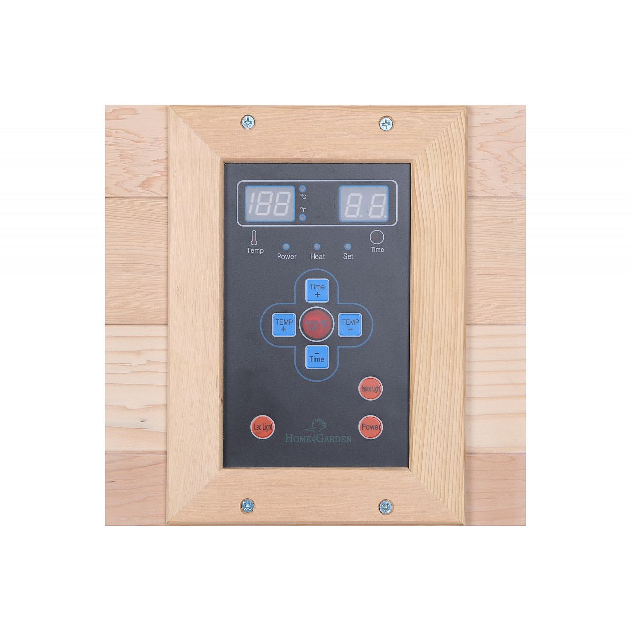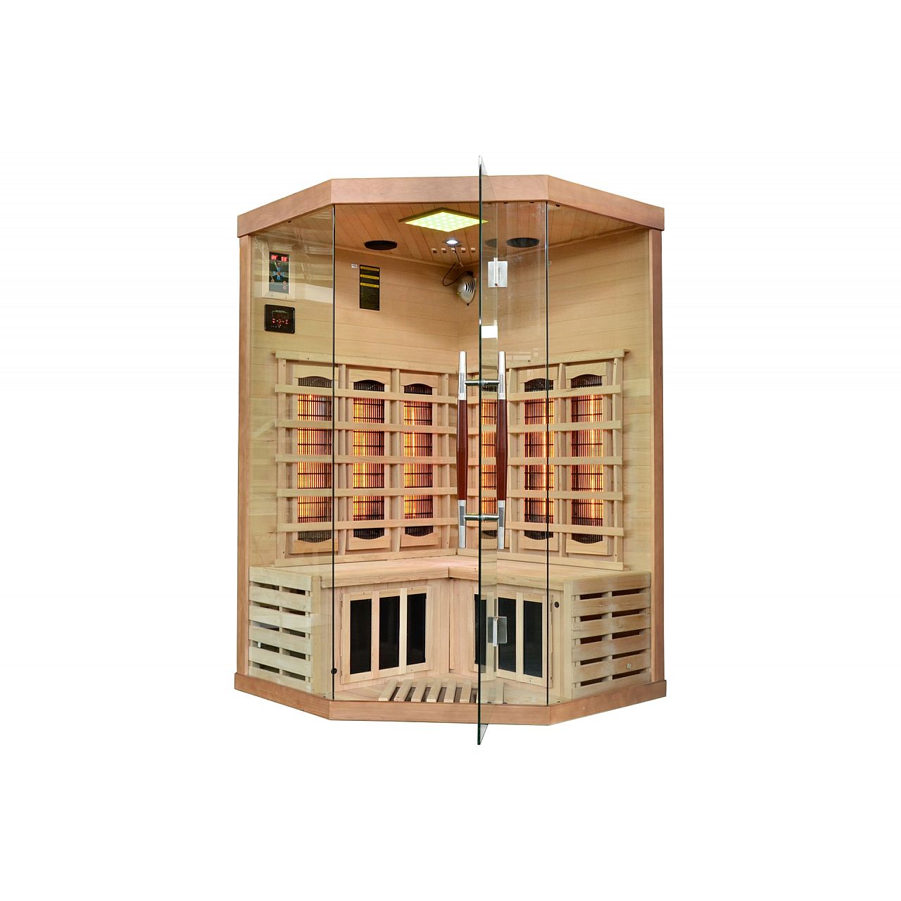 Інфрачервона сауна (інфрачервона, низькотемпературна) без пари і з низькою температурою повітря (до 60°C), де замість традиційних печей використовуються кварцові, керамічні або вугільні інфрачервоні обігрівачі. Кабіну з канадської ялиці можна встановити у ванній, спальні, вітальні або будь-якій іншій кімнаті. Для роботи достатньо звичайного джерела живлення 230В. Після ввімкнення сауна налаштована на заводі на 60 хвилин. Він має автоматичний вимикач, який запобігає випадковому залишанню сауни увімкненою на надто тривалий час, що робить її безпечною у використанні. Радіатори захищені дерев'яними сітками.