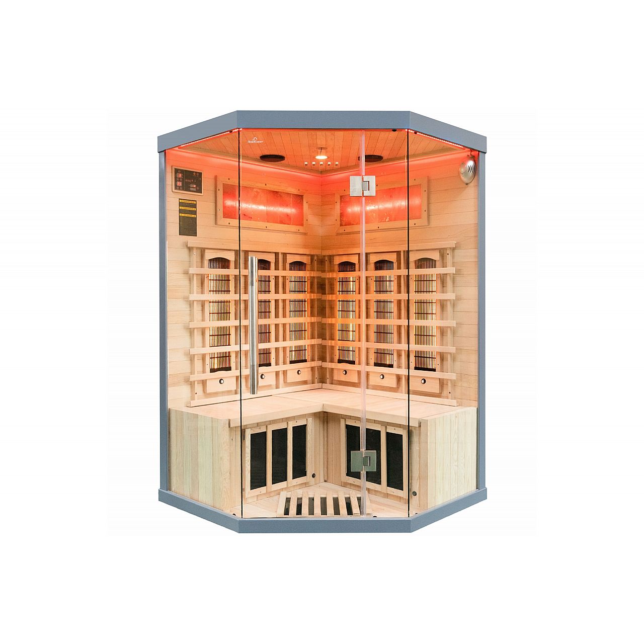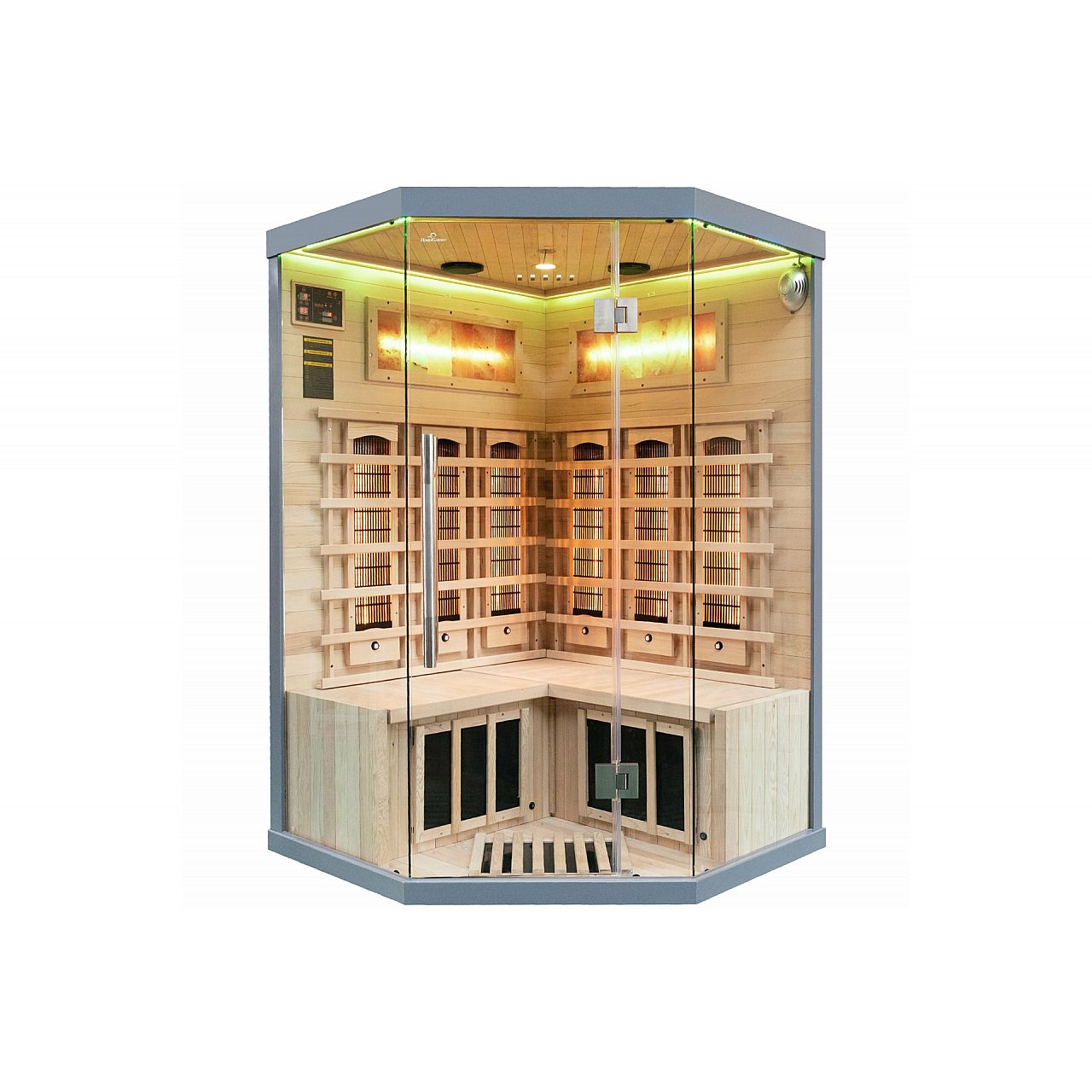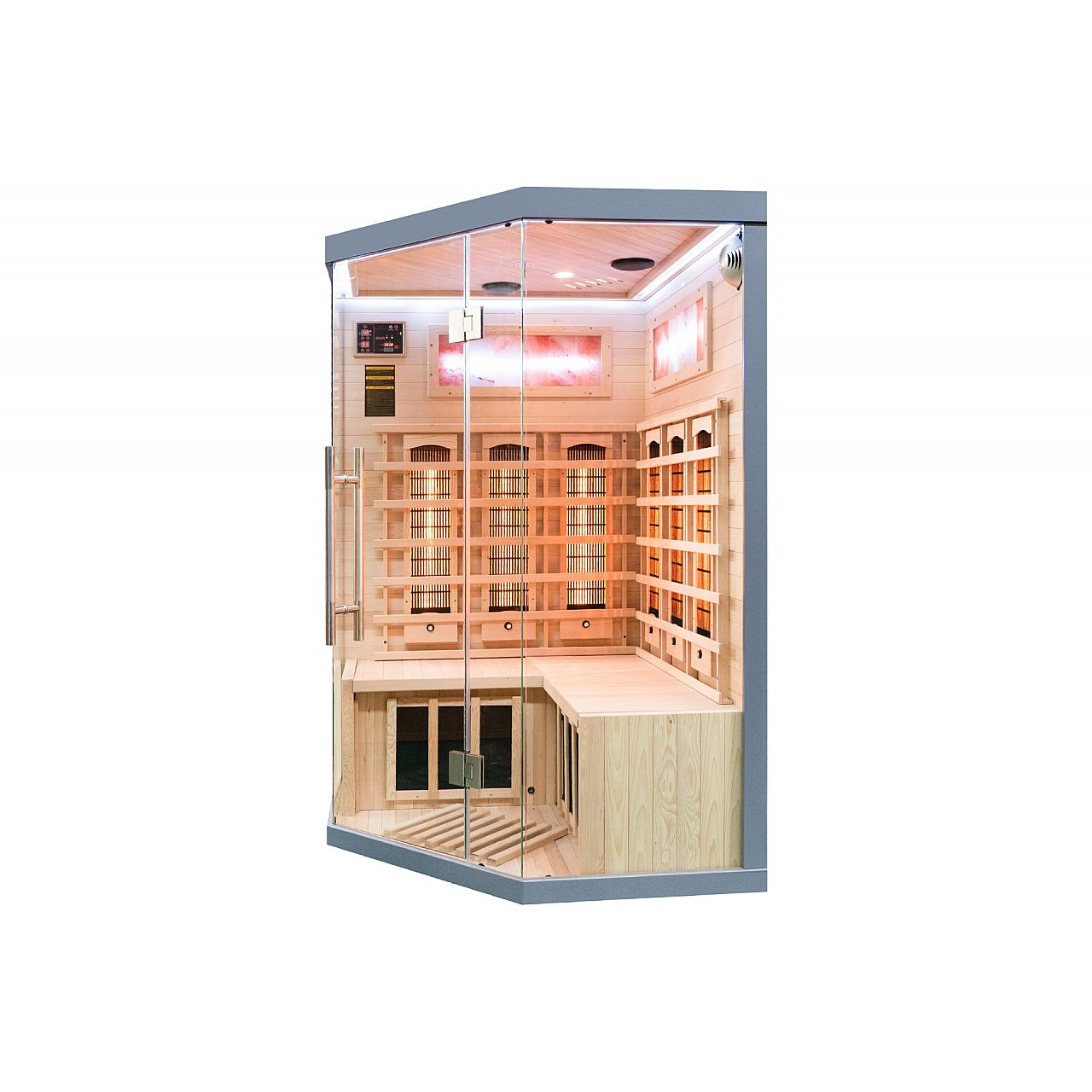 Інфрачервона сауна (інфрачервона, низькотемпературна) без пари і з низькою температурою повітря (до 60°C), де замість традиційних печей використовуються кварцові, керамічні або вугільні інфрачервоні обігрівачі. Кабіну з канадської ялиці можна встановити у ванній, спальні, вітальні або будь-якій іншій кімнаті. Для роботи достатньо звичайного джерела живлення 230В. Після ввімкнення сауна налаштована на заводі на 60 хвилин. Він має автоматичний вимикач, який запобігає випадковому залишанню сауни увімкненою на надто довгий час, що робить її безпечною у використанні. Радіатори захищені дерев'яними сітками.