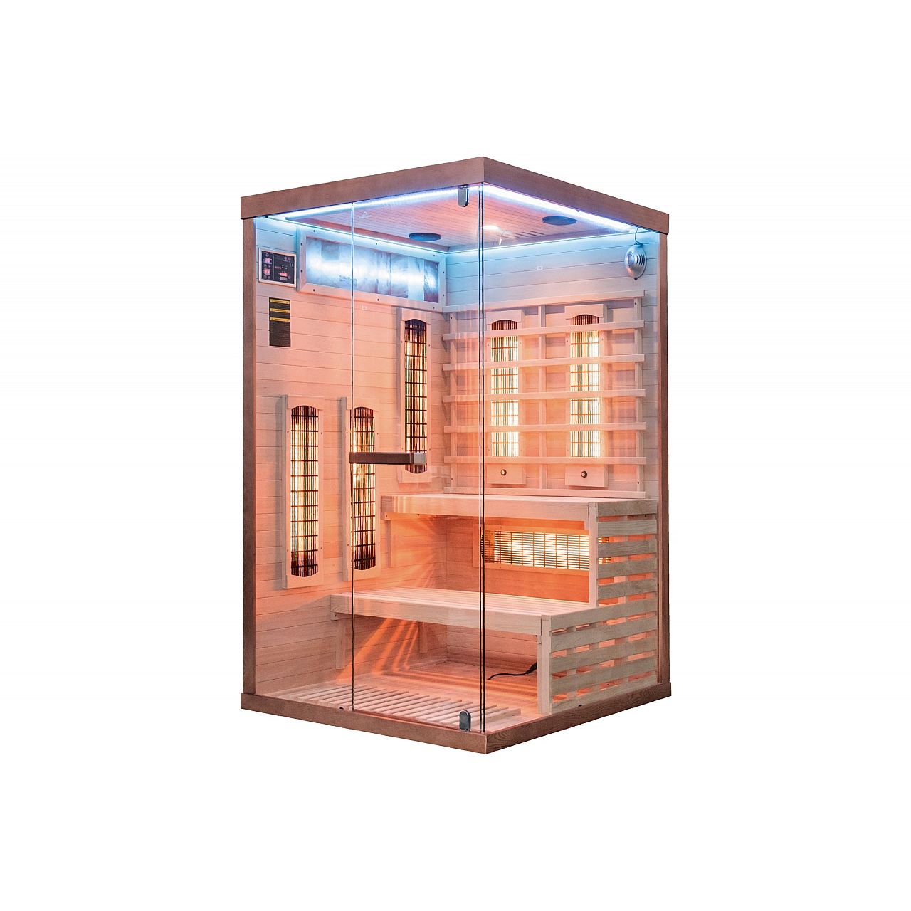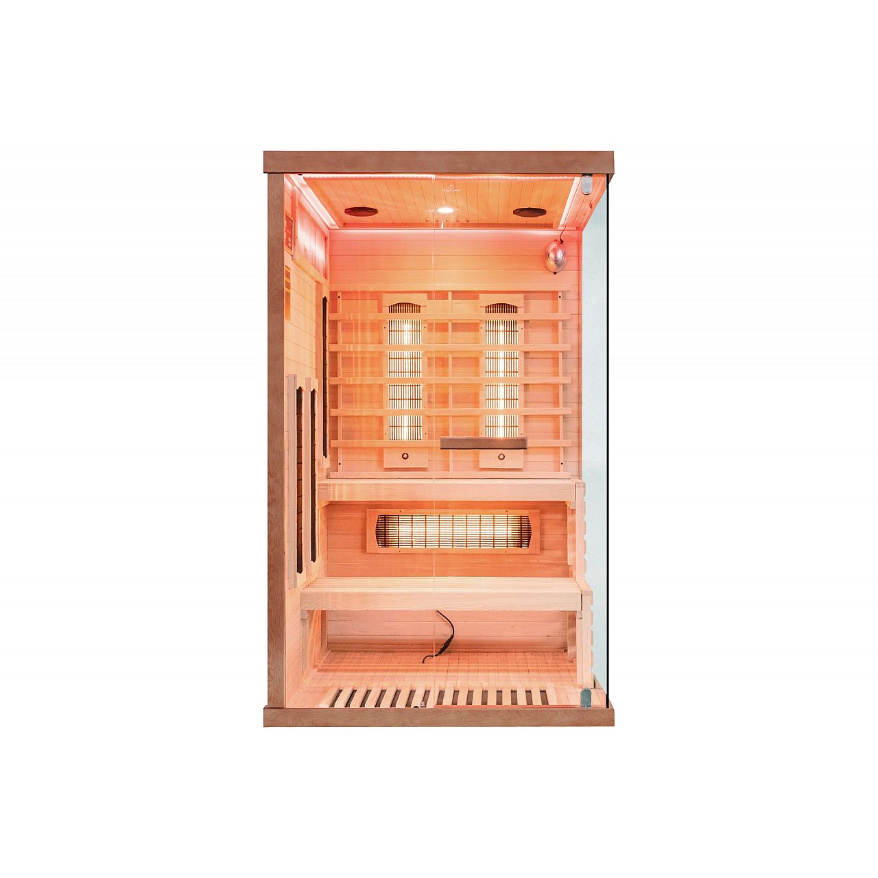 Інфрачервона сауна (інфрачервона, низькотемпературна) без пари та з низькою температурою повітря (до 60°C), де замість традиційних печей використовуються кварцові, керамічні або карбонові інфрачервоні обігрівачі. Дерев'яну кабіну з канадської ялиці можна встановити у ванній кімнаті, спальні, вітальні або будь-якій іншій кімнаті. Для роботи достатньо стандартного джерела живлення 230 В. Заводські налаштування сауни встановлені на 60 хвилин після ввімкнення. Він має автоматичний вимикач, який запобігає випадковому залишенню сауни увімкненою на занадто тривалий час, що робить її безпечною у використанні. Обігрівачі оснащені потенціометрами, завдяки яким можна регулювати потужність нагріву кожного з них, та додатково закріплені дерев'яними ґратами.