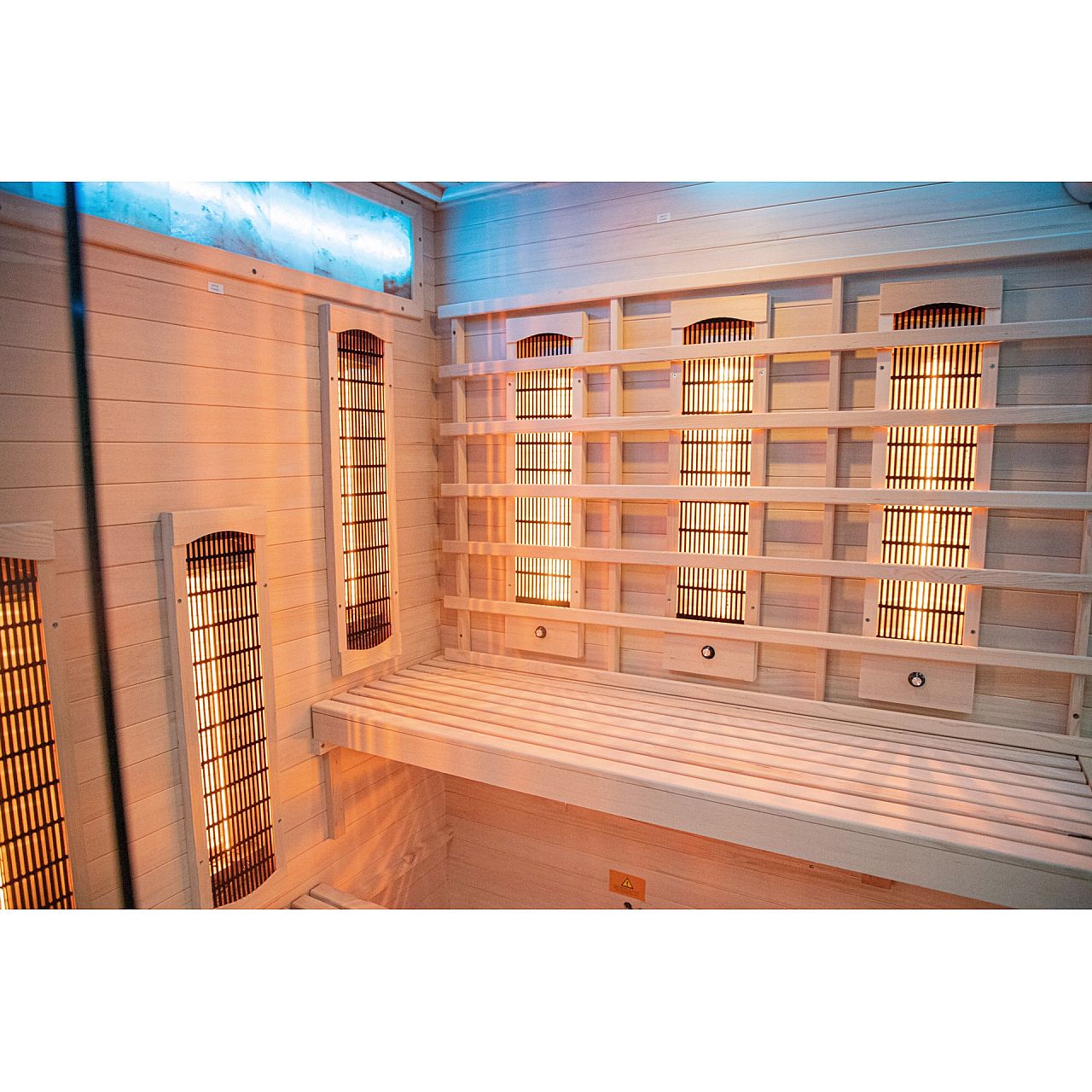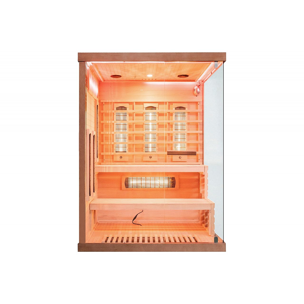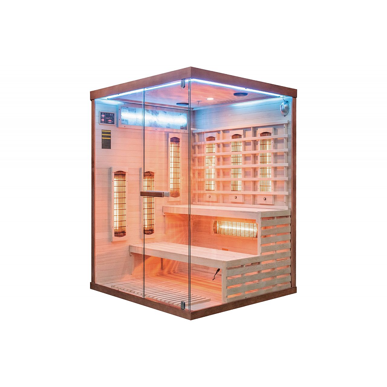 Інфрачервона сауна (інфрачервона, низькотемпературна) без пари та з низькою температурою повітря (до 60°C), де замість традиційних печей використовуються кварцові, керамічні або карбонові інфрачервоні обігрівачі. Дерев'яну кабіну з канадської ялиці можна встановити у ванній кімнаті, спальні, вітальні або будь-якій іншій кімнаті. Для роботи достатньо стандартного джерела живлення 230 В. Заводські налаштування сауни встановлені на 60 хвилин після ввімкнення. Він має автоматичний вимикач, який запобігає випадковому залишенню сауни увімкненою на занадто тривалий час, що робить її безпечною у використанні. Обігрівачі оснащені потенціометрами, завдяки яким можна регулювати потужність нагріву кожного з них, та додатково закріплені дерев'яними ґратами.